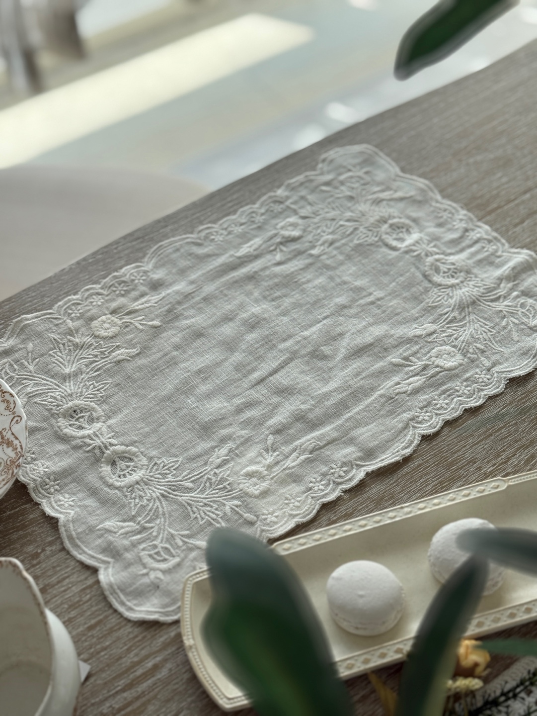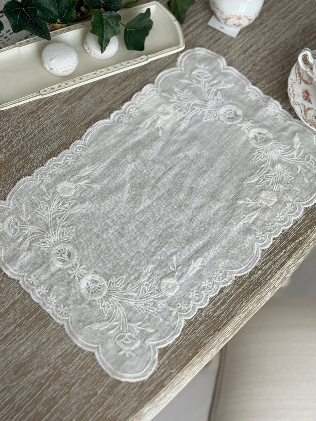 25x40cm의 플레이스 매트 사이즈, 찻잔, 식기, 화병 아래 포인트 데코