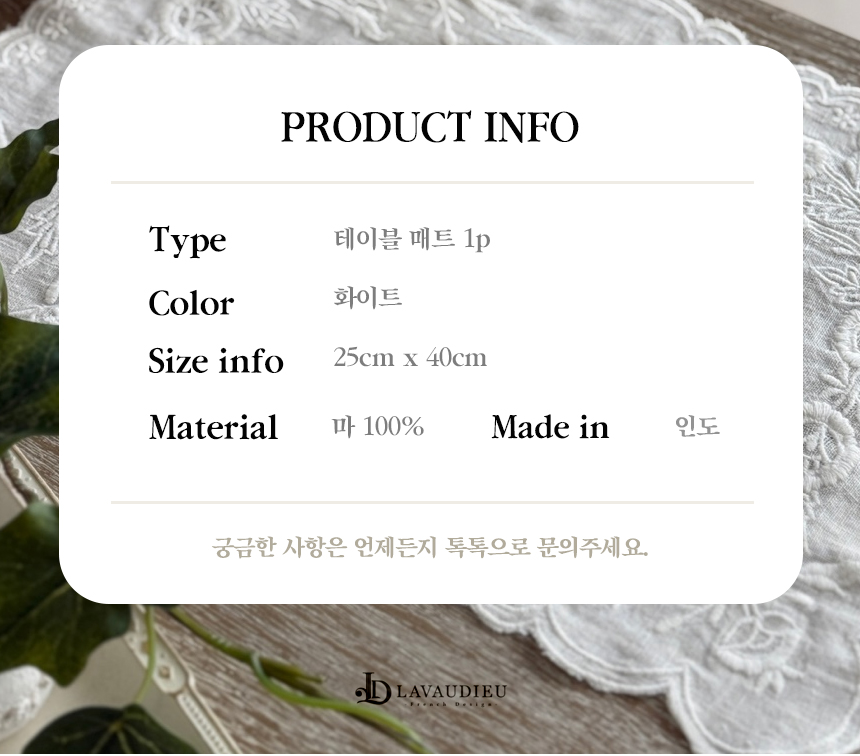 테이블 위에 프렌치 컨트리 스타일의 소박하고 우아한 감성을 더합니다.