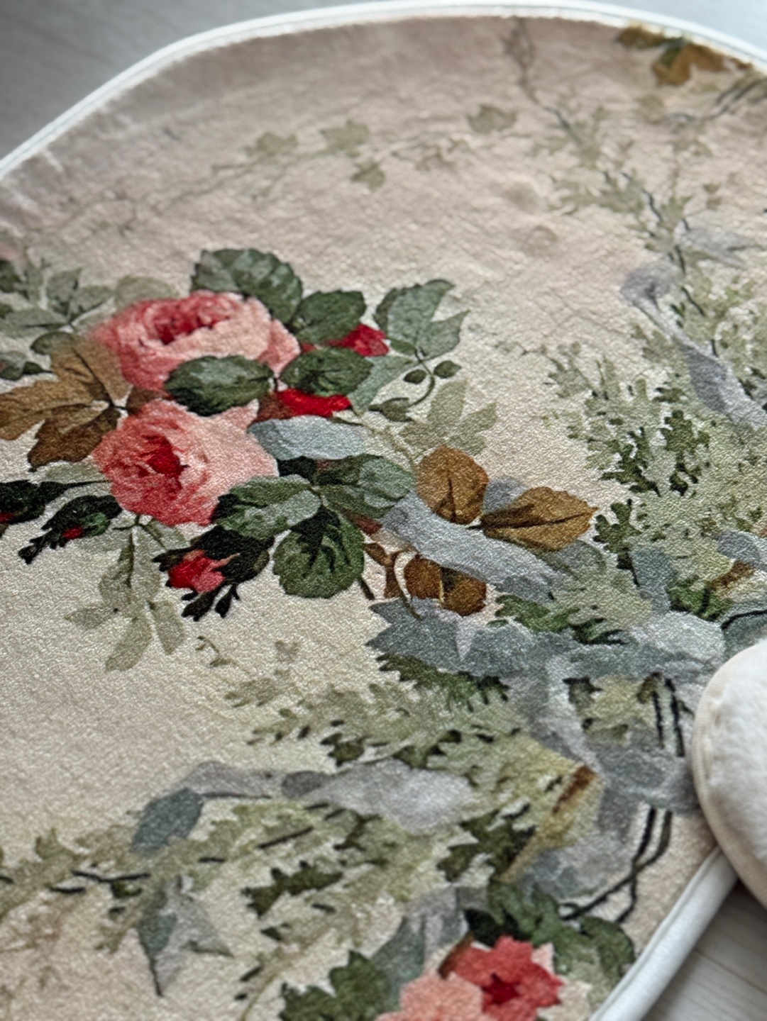 화려하면서도 차분한 로즈 부케 자카드 패턴이 침실, 화장대 앞 등 작은 공간에 깊이 있고 로맨틱한 분위기를 더해주는 포인트 발매트입니다.