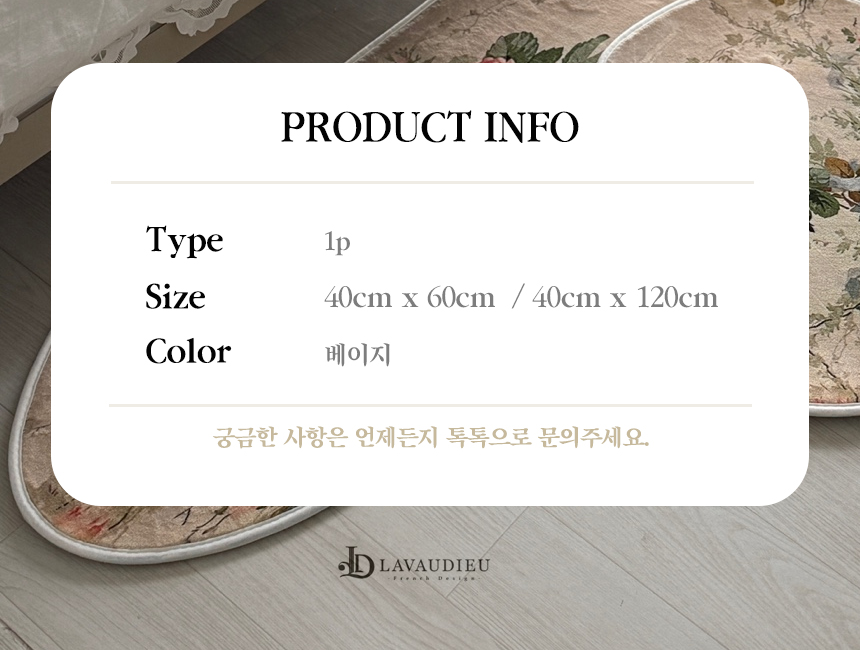 섬세한 컬러와 직조감이 돋보이는 디자인으로, 일반 발매트와 차별화된 클래식 프렌치 인테리어를 손쉽게 완성해보세요.