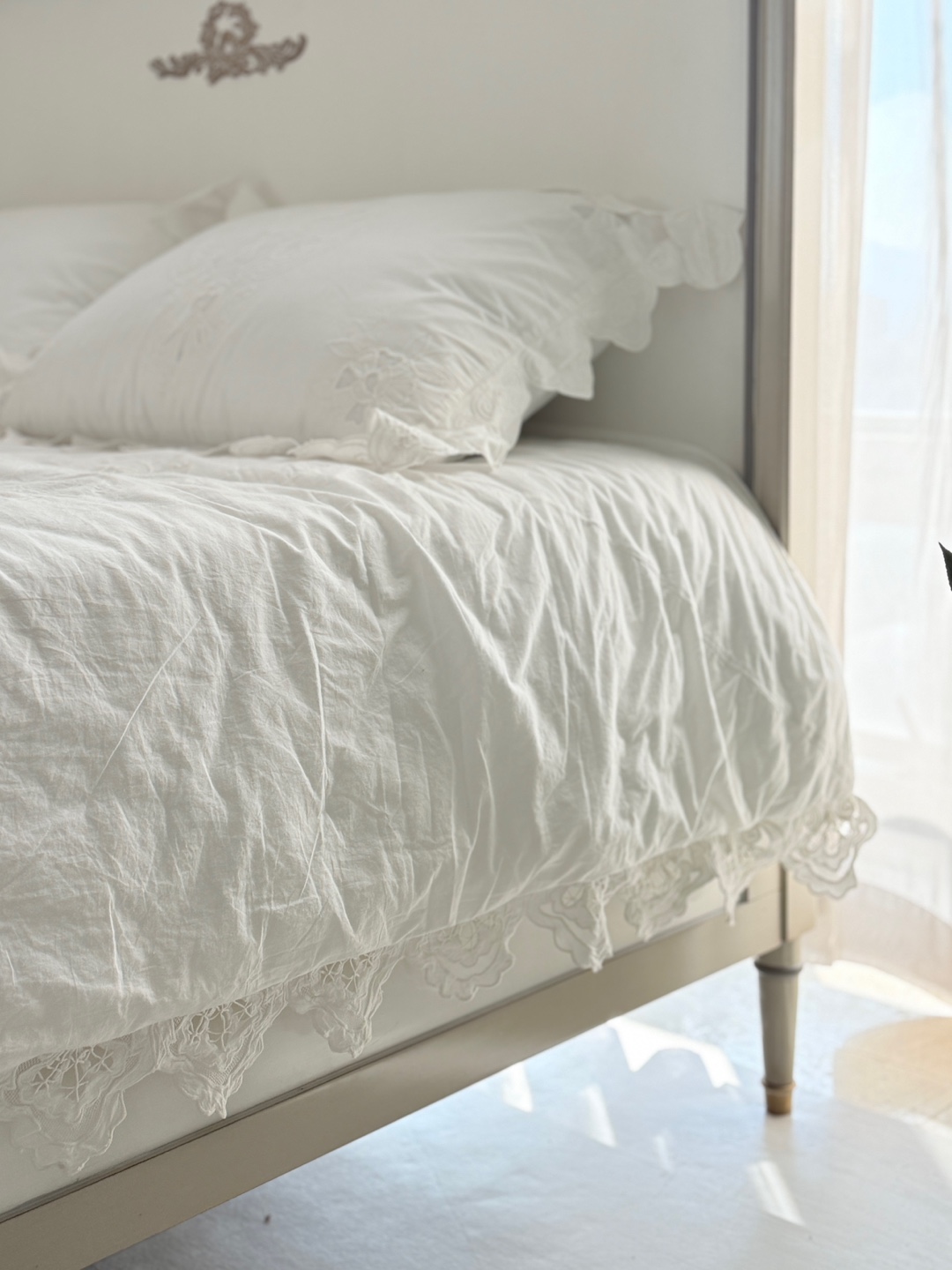 스타일링 레이스 침구와 매치했을 때 가장 빛나는 쉐비식 스타일, 신혼 침실의 로망 실현