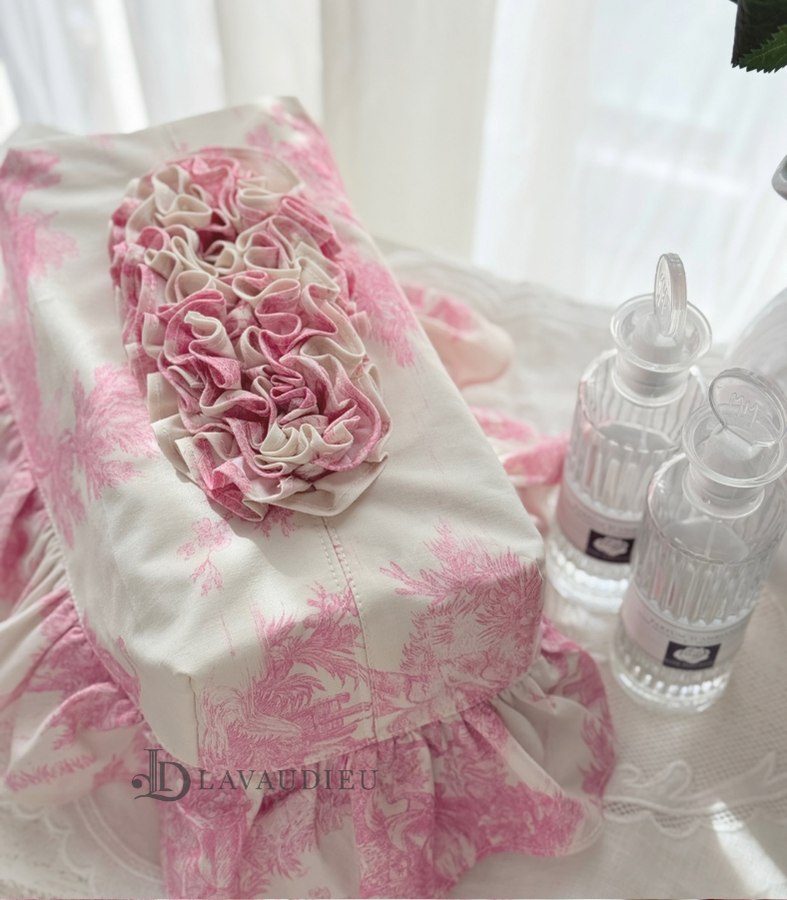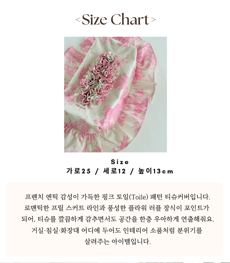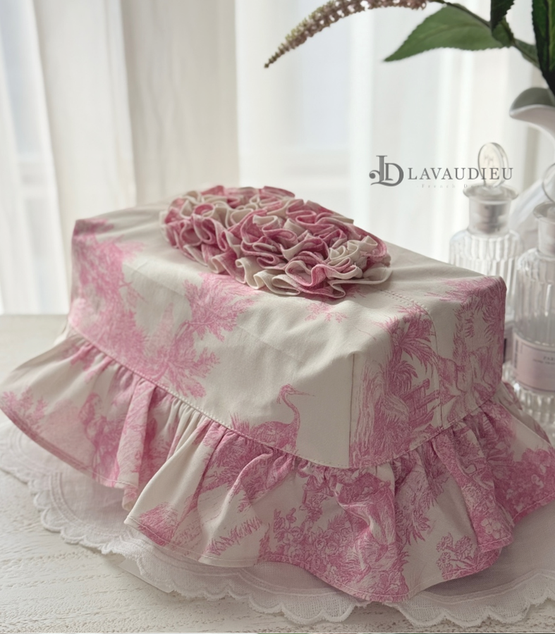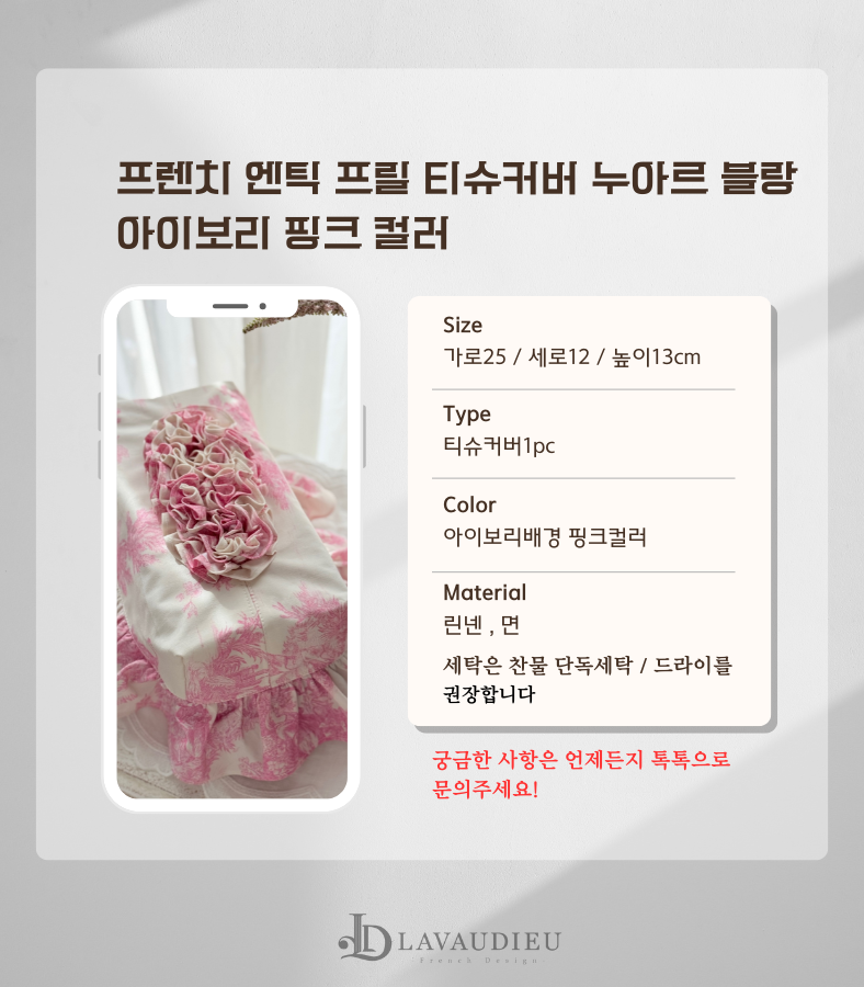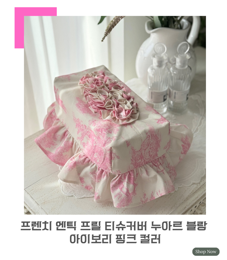 - HOME > 홈패브릭 커텐 발매트 > 티슈커버,식탁보 > 프렌치 엔틱 프릴 인테리어 각티슈 커버 누아르 블랑 아이보리 핑크 컬러