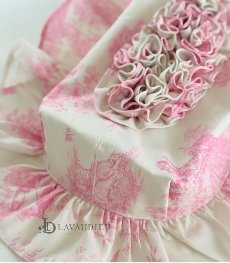 프렌치 엔틱 프릴 인테리어 각티슈 커버 누아르 블랑 아이보리 핑크 컬러