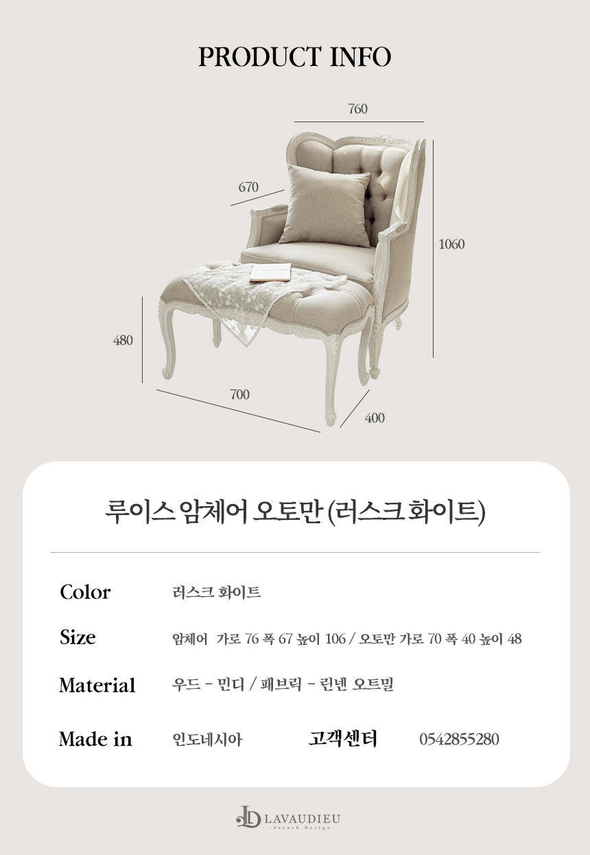 | 품명 | 암체어 오토만 세트 엔틱 프렌치 1인용 소파 (루이스) |