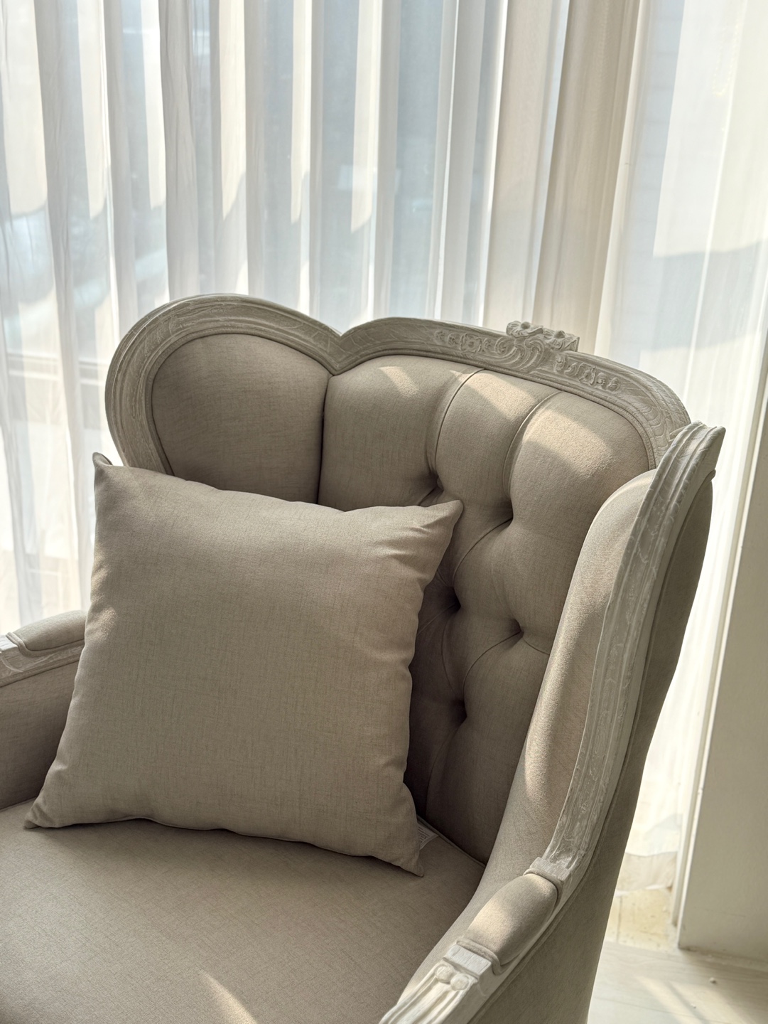 디자인&스타일 우아한 실루엣의 윙백 스타일과 버튼 터프팅 디테일로 완성한 클래식 무드