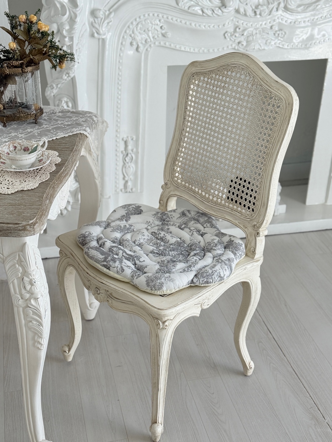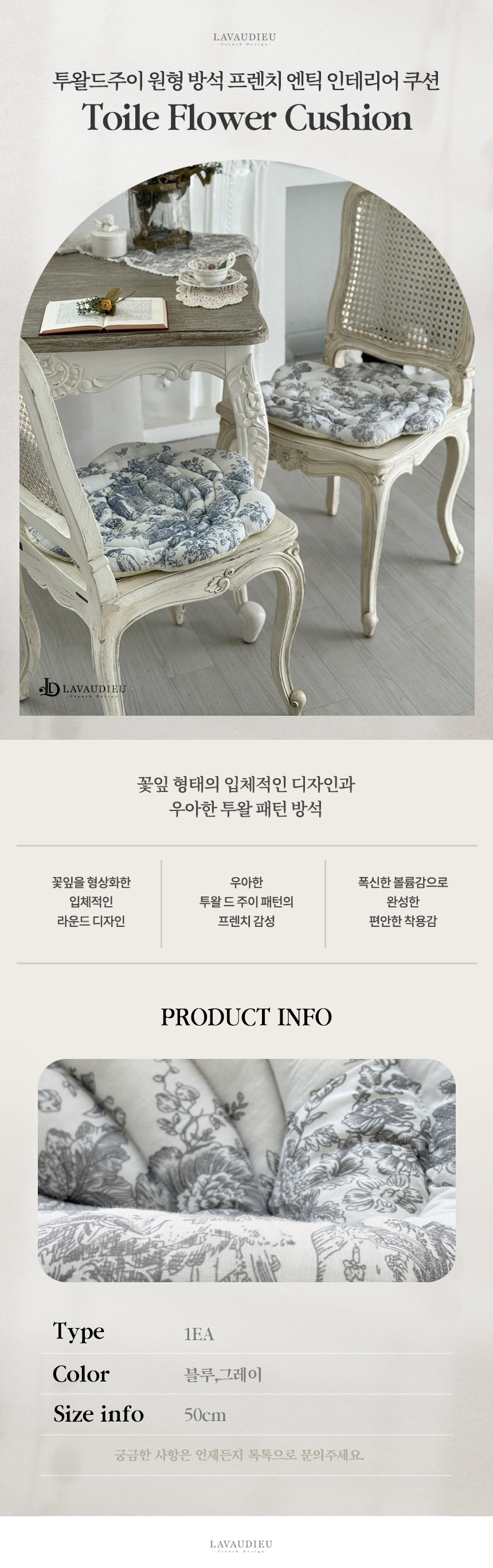 클래식한 투왈 드 주이 프린팅이 더해져 단독 배치만으로도 고급스러운 프렌치 무드를 연출합니다.