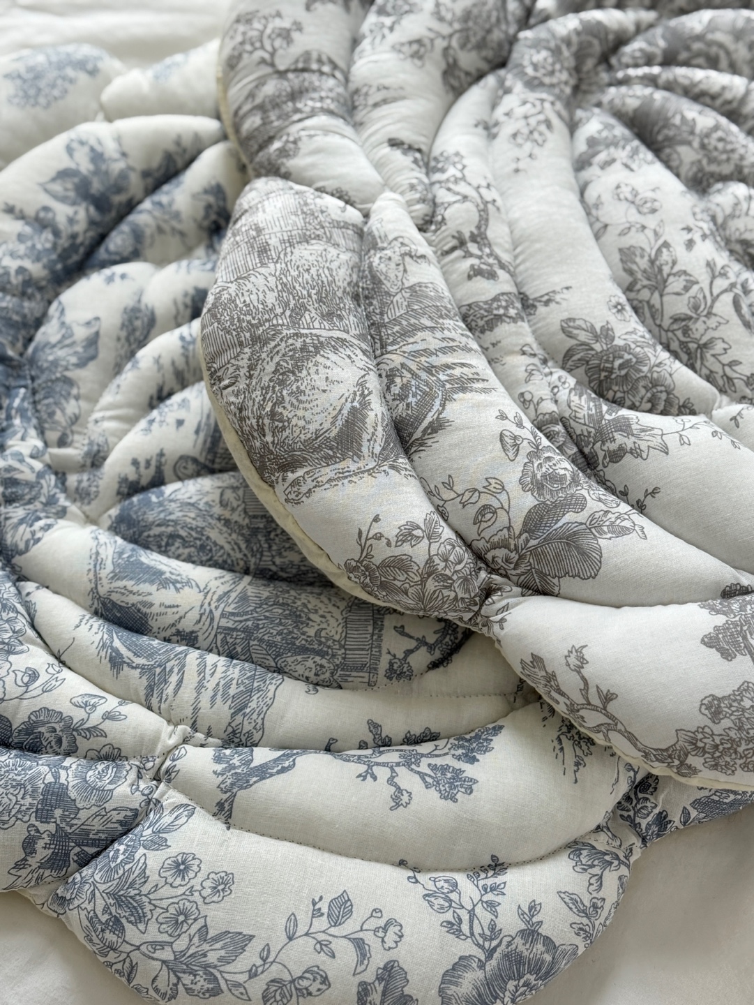 디자인&프린팅 한 송이 꽃을 연상시키는 입체적인 쉐입과 정교한 투왈 드 주이 패턴의 조화