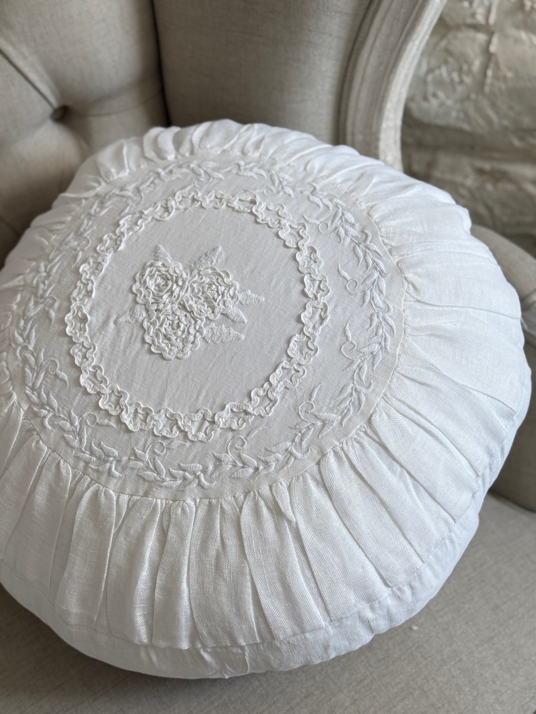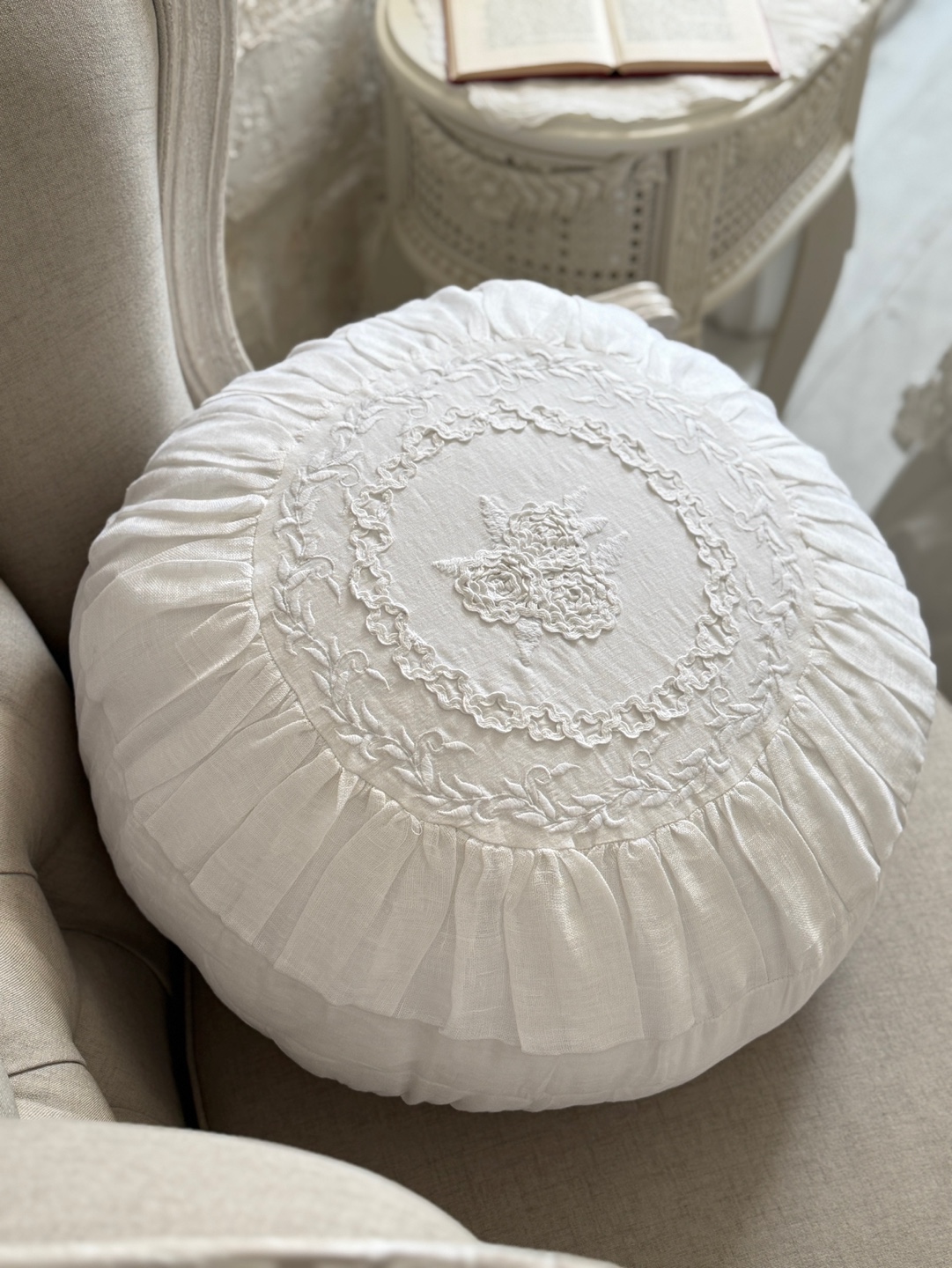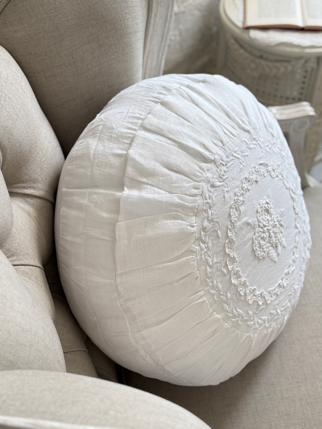 패브릭 린넨 50%와 면 50% 소재를 사용하여 내추럴한 텍스처와 편안한 쿠션감을 동시에 제공합니다.