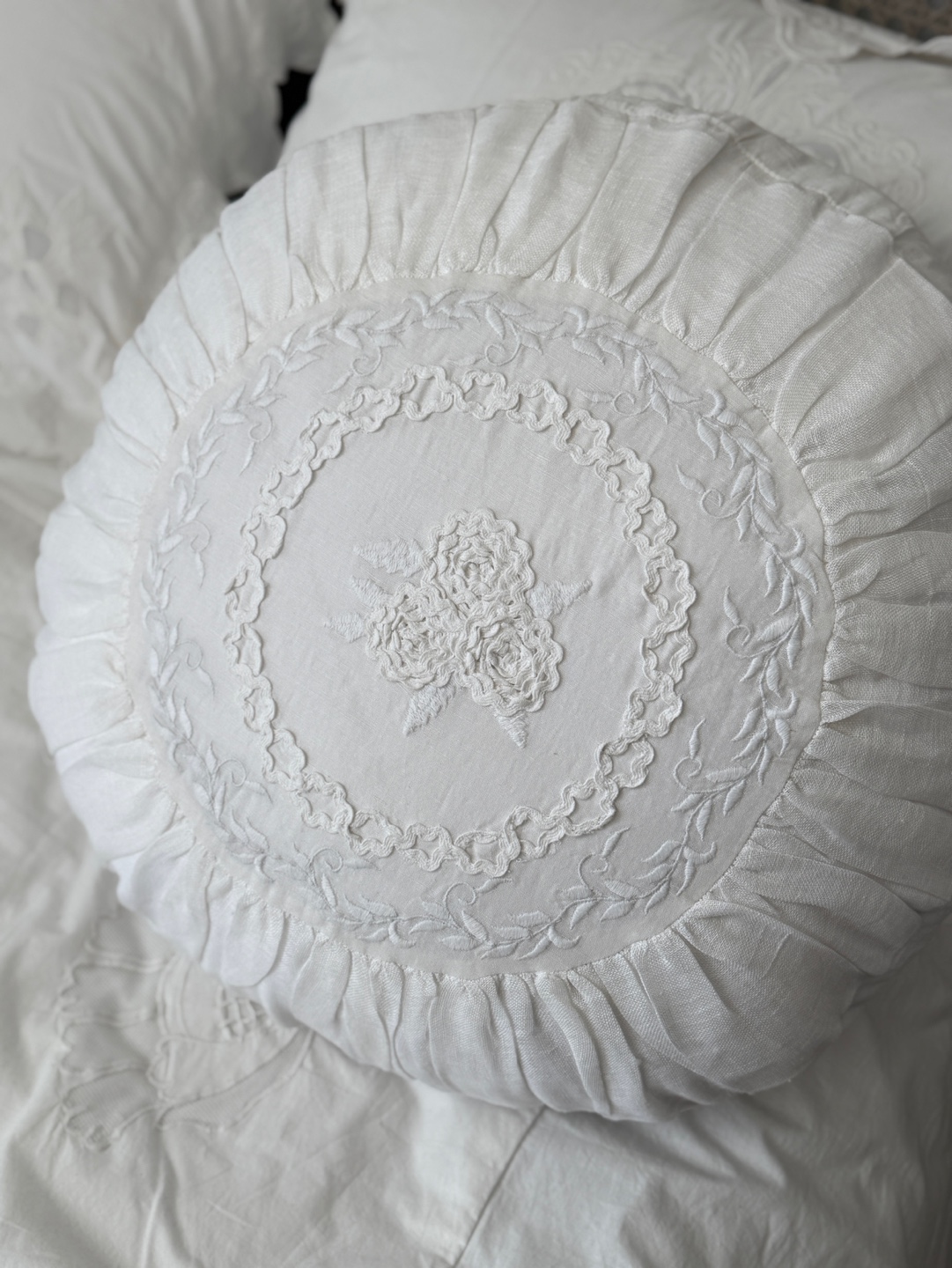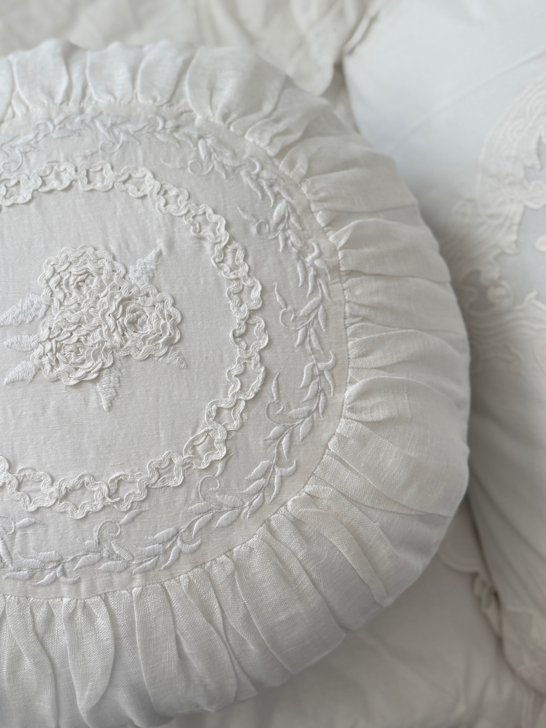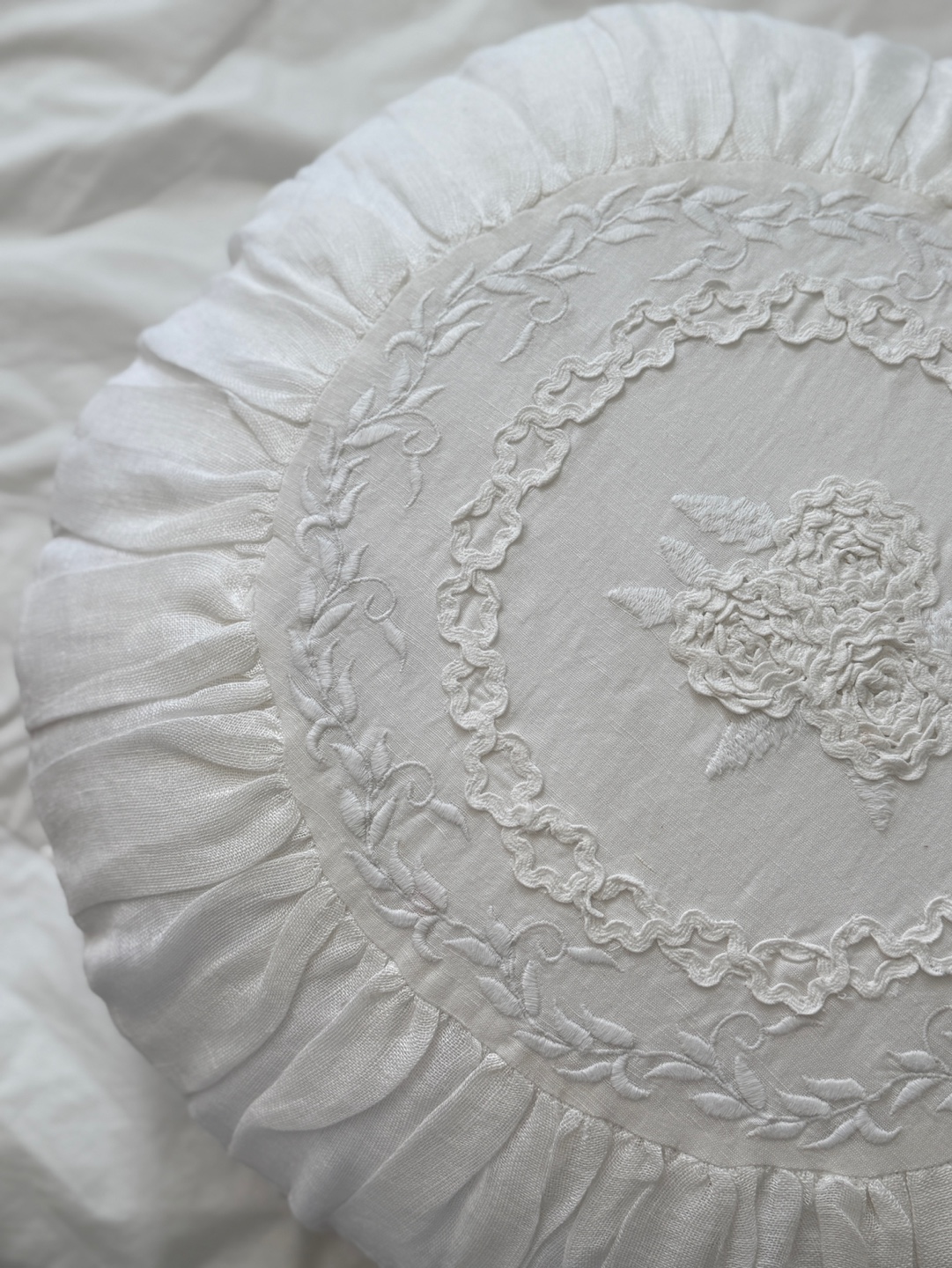 섬세하게 수놓인 꽃무늬 자수와 입체적인 프릴 디테일이