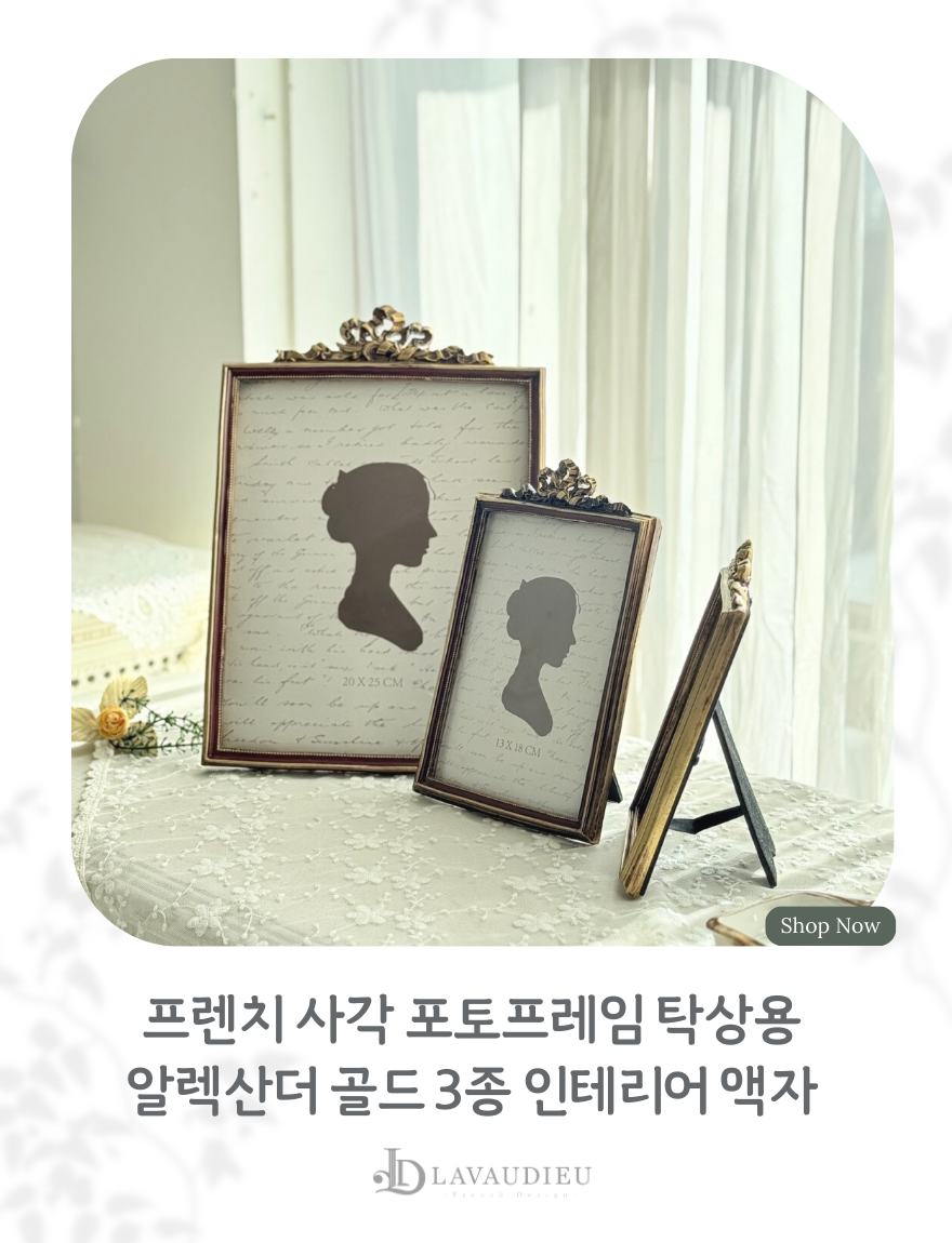 | 품명 | 프렌치 사각 포토프레임 탁상용 알렉산더 골드 3종 인테리어 액자 |