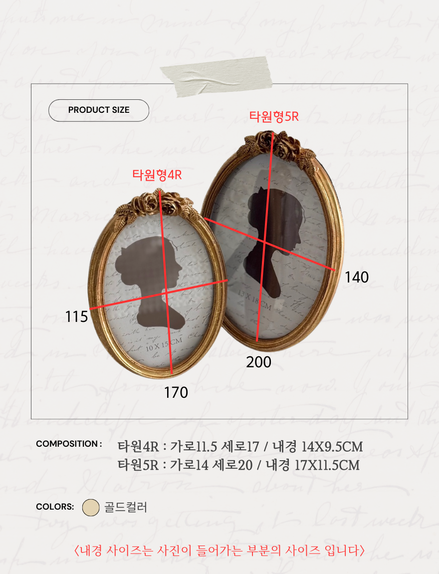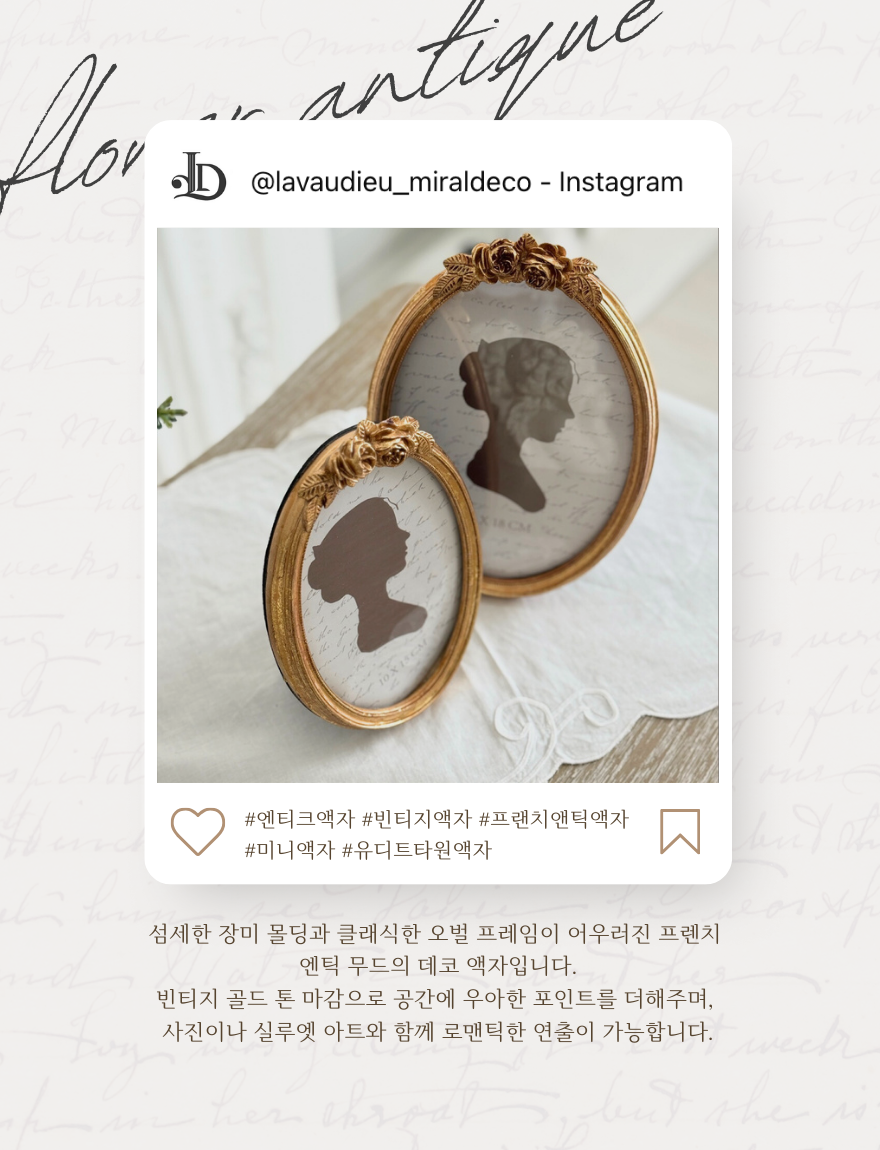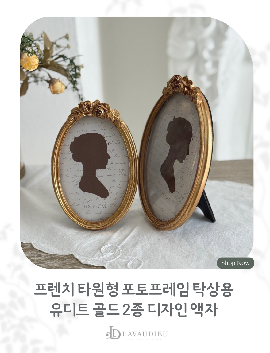 | 품명 | 프렌치 타원형 포토프레임 탁상용 유디트 골드 2종 디자인 액자 |