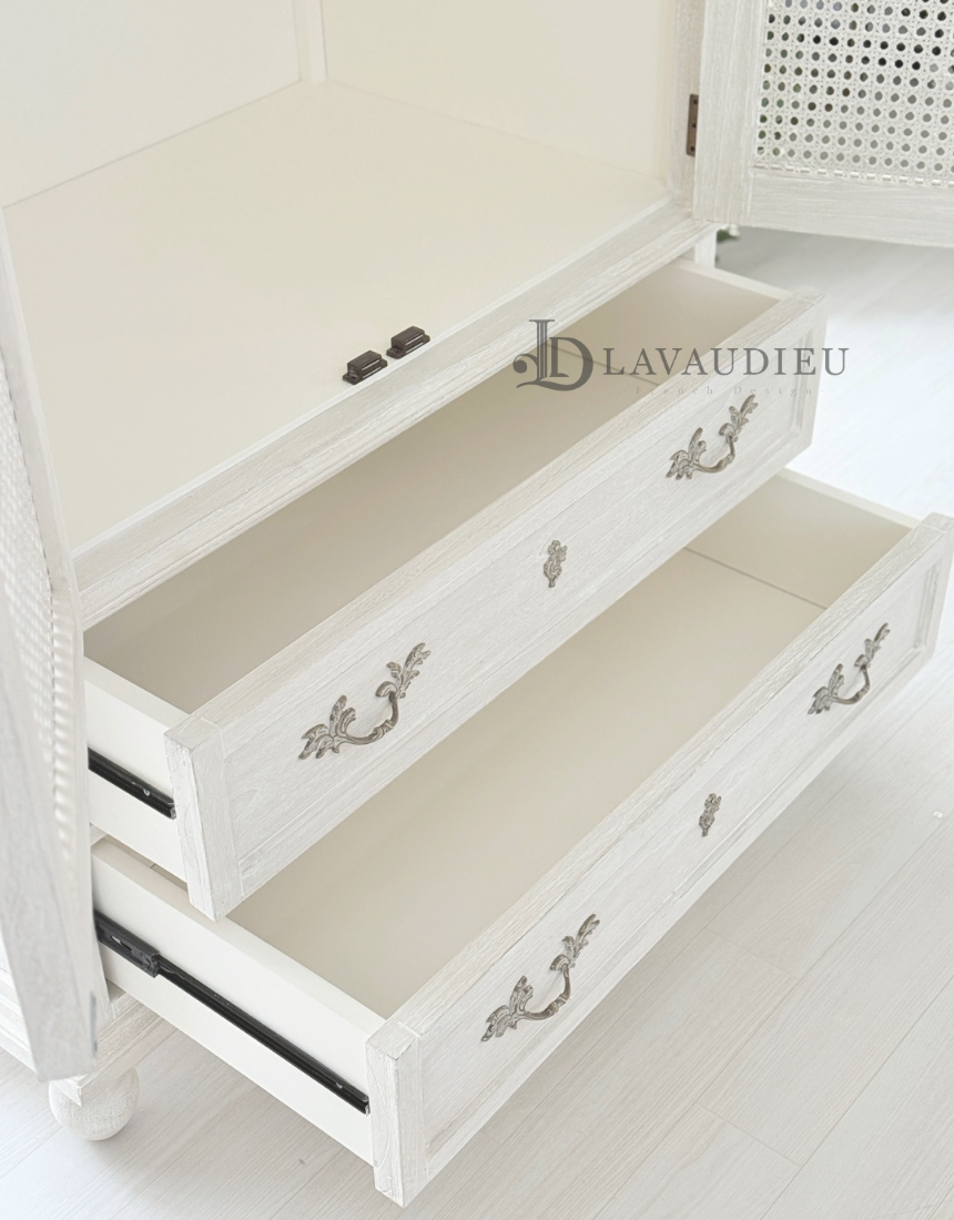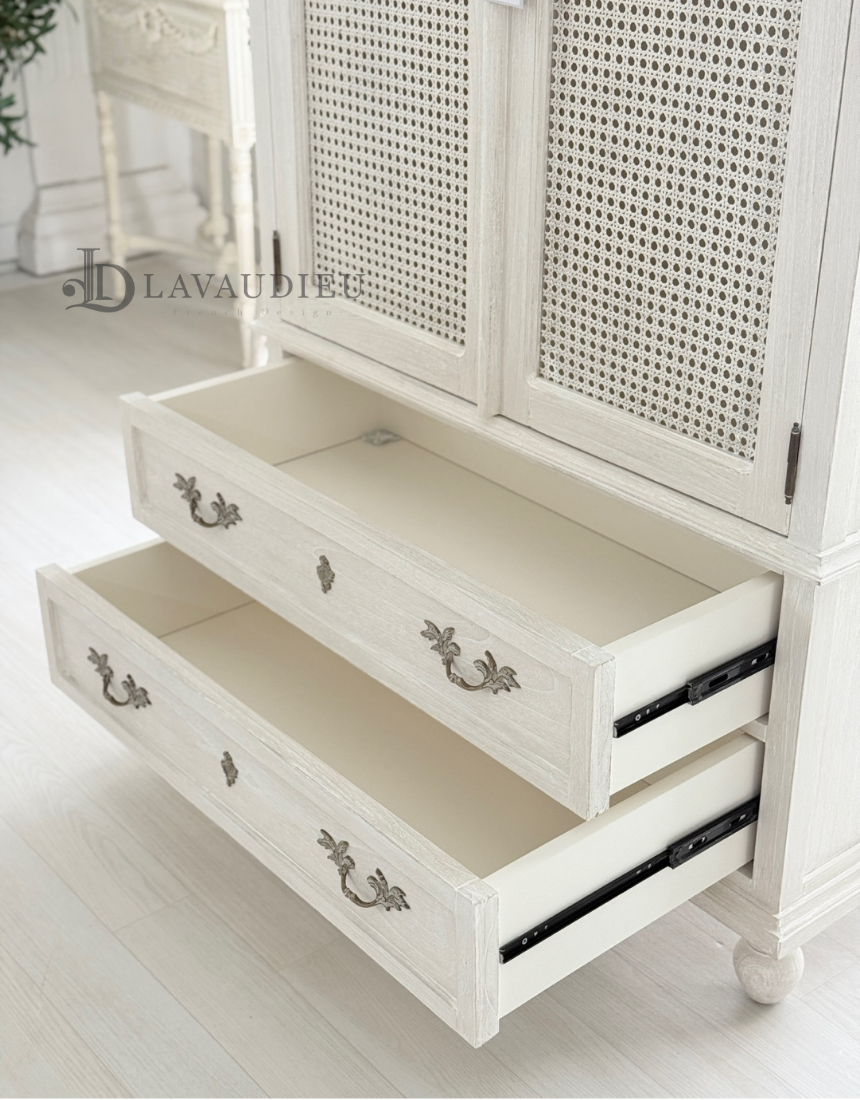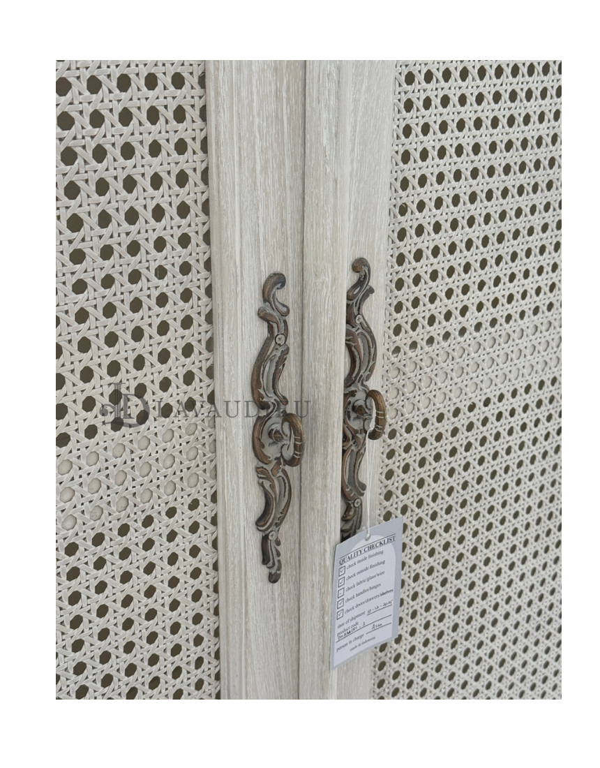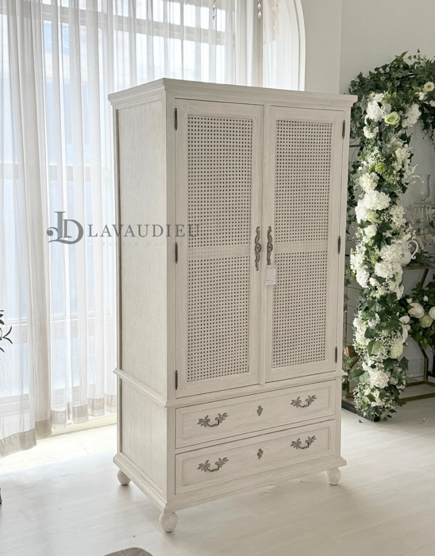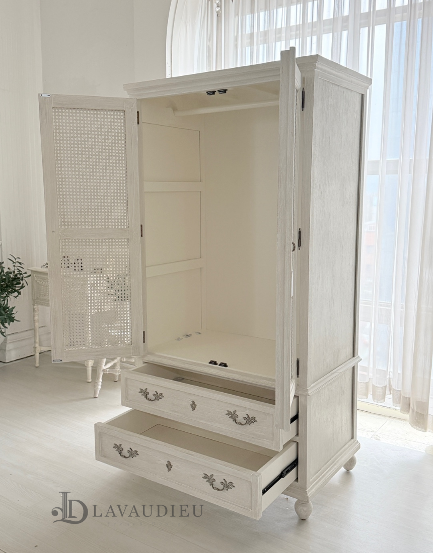 | 품명 | 프렌치 엔틱 라탄 옷장 화이트 원목 수납 장식장 드레스장 |