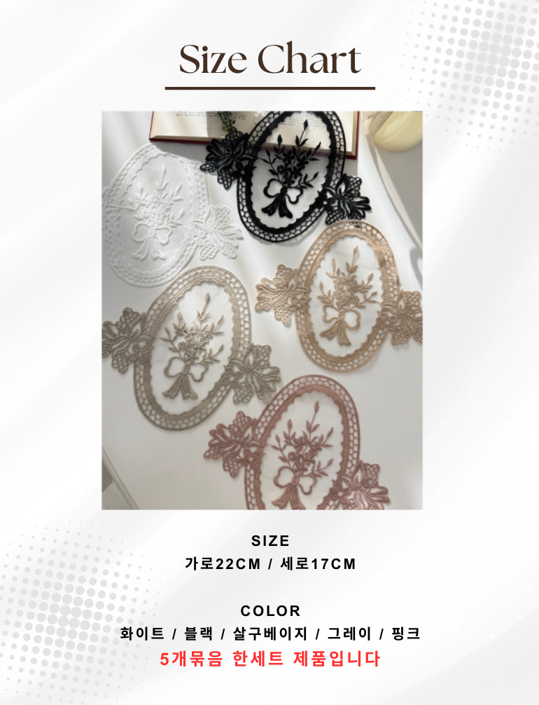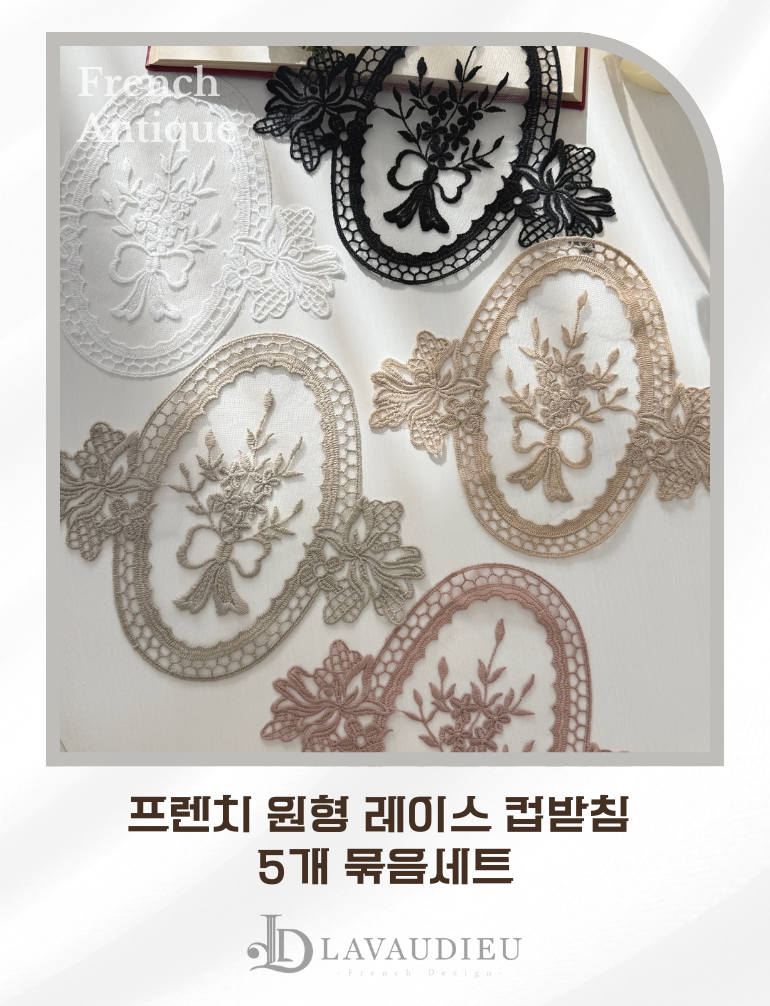 | 품명 | 프렌치 원형 레이스 컵받침 5개 묶음세트 |