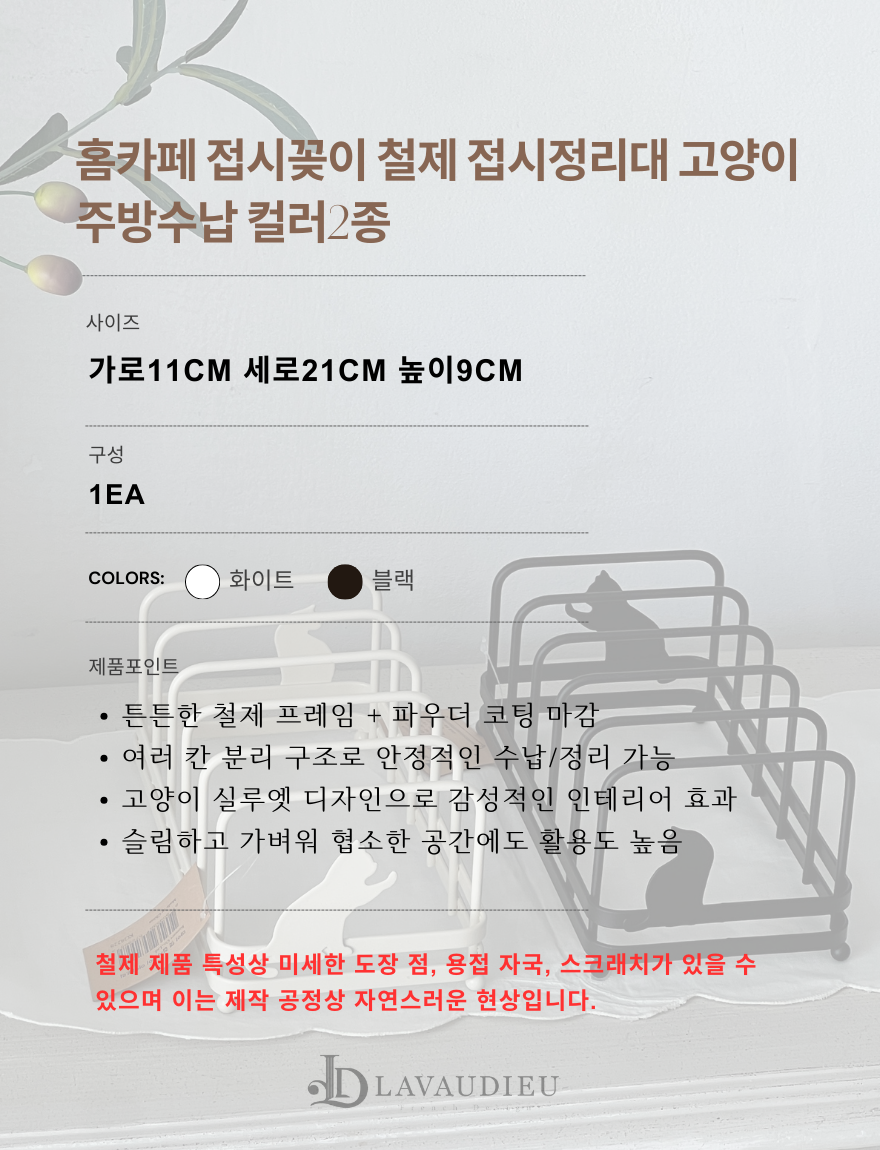| 품명 및 모델명 | 상품상세참조/홈카페 접시꽂이 철제 접시정리대 고양이 주방수납 컬러2종 |