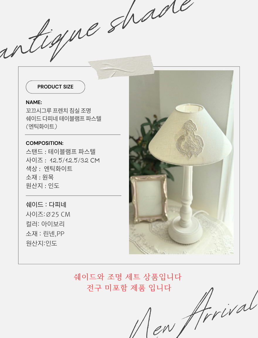 | 색상 | 쉐이드:아이보리 , 스탠드:엔틱화이트 |