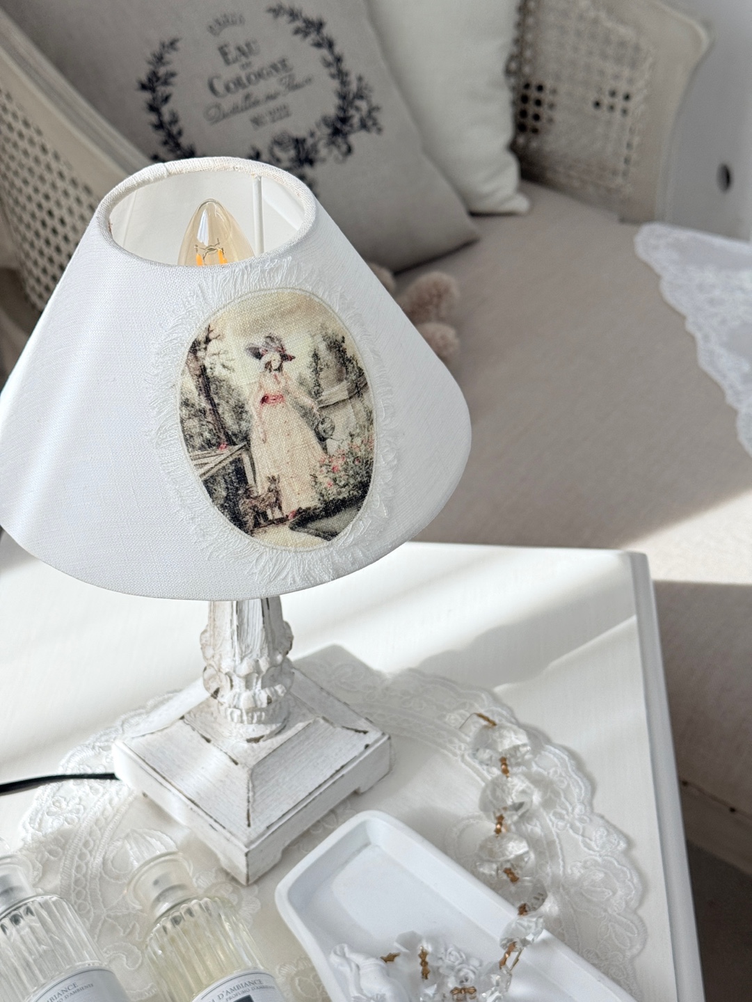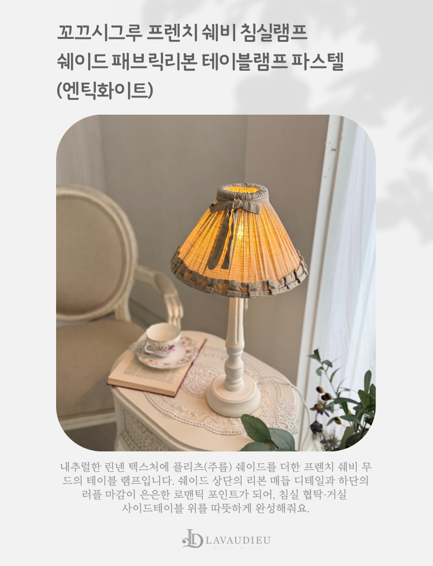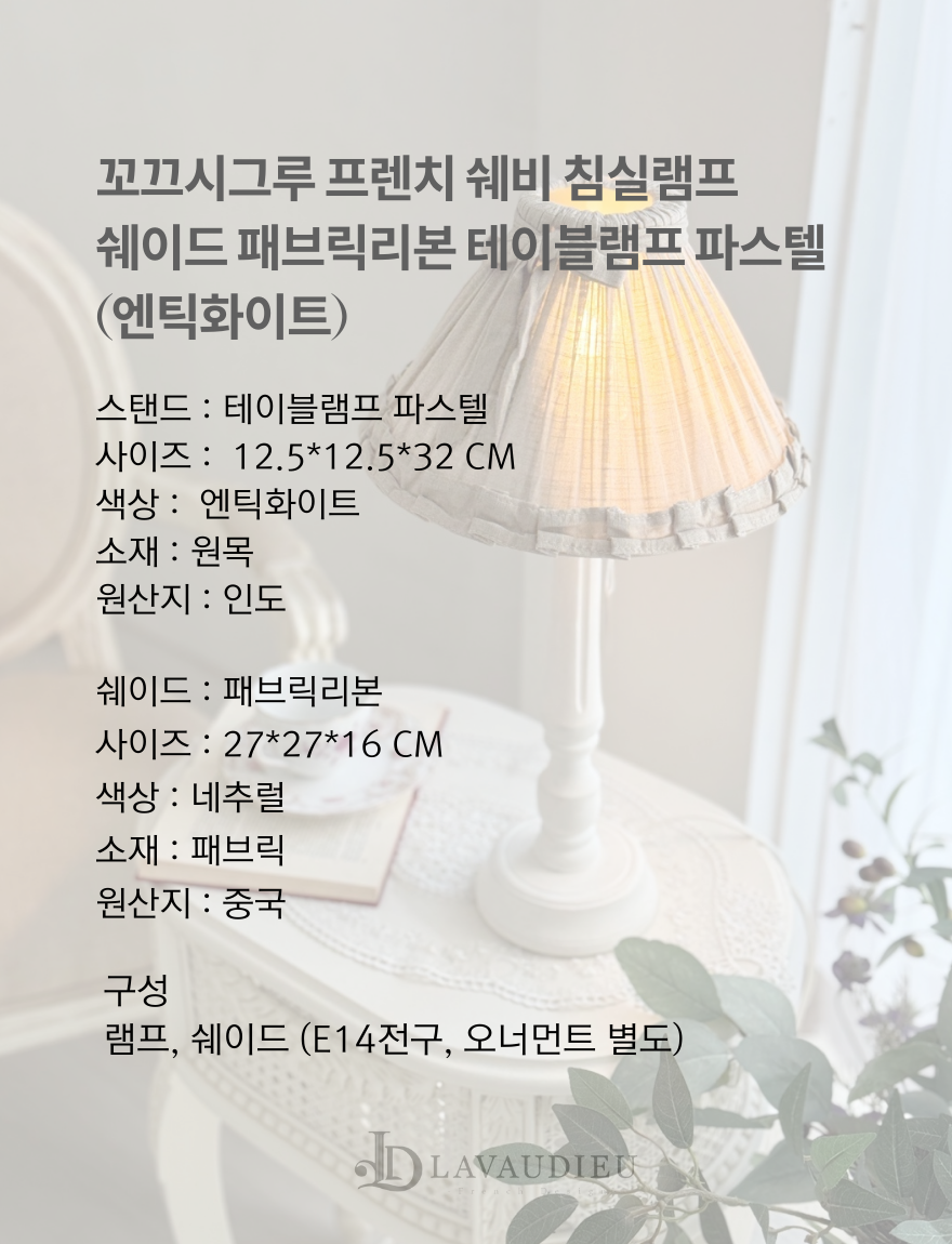 테이블램프 파스텔 (엔틱화이트) 램프에 쉐이드 패브릭리본Ø27 세트 제품 입니다
