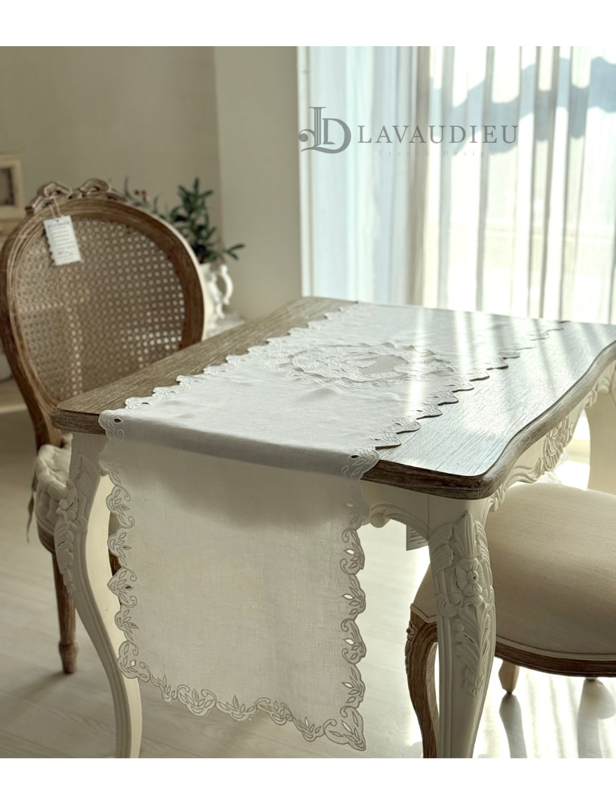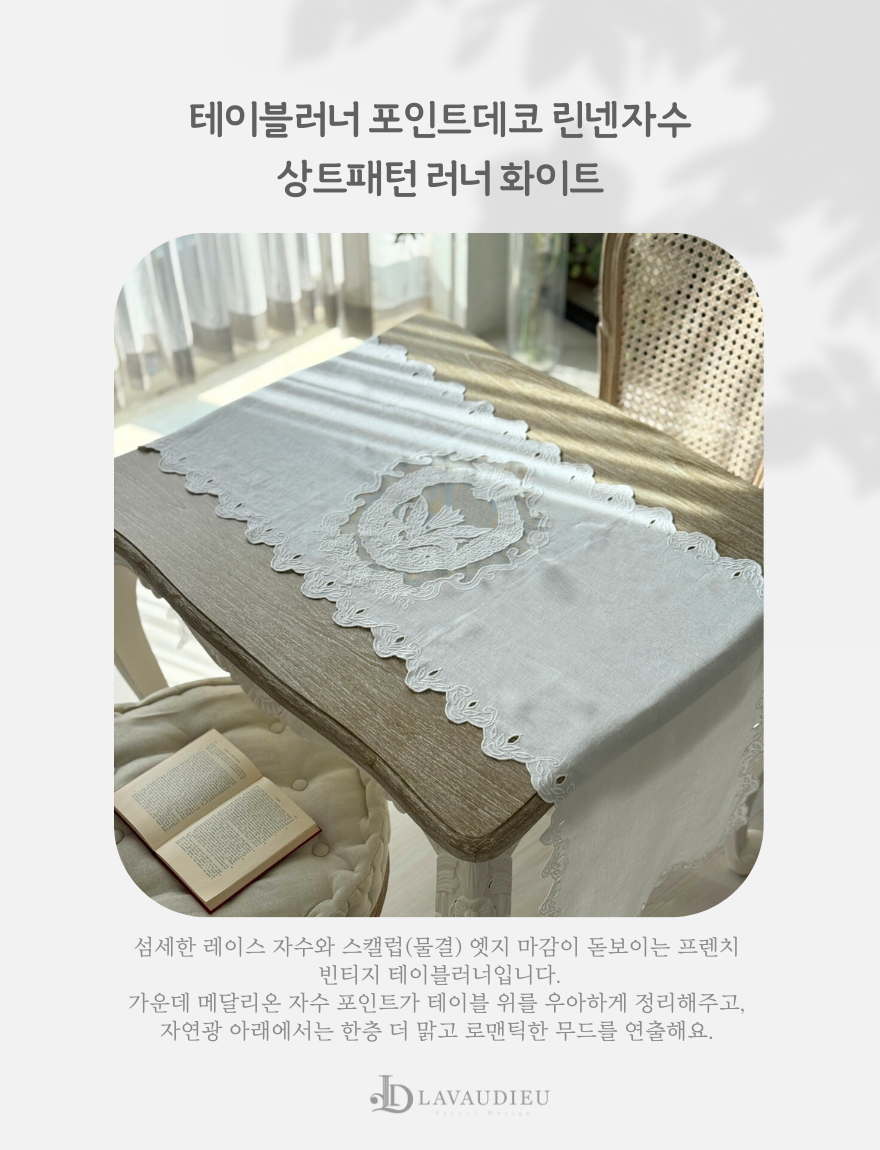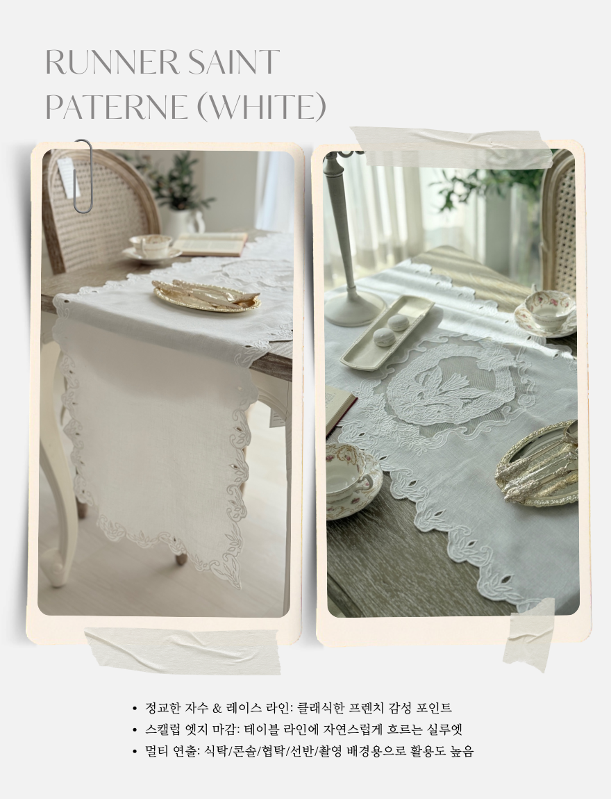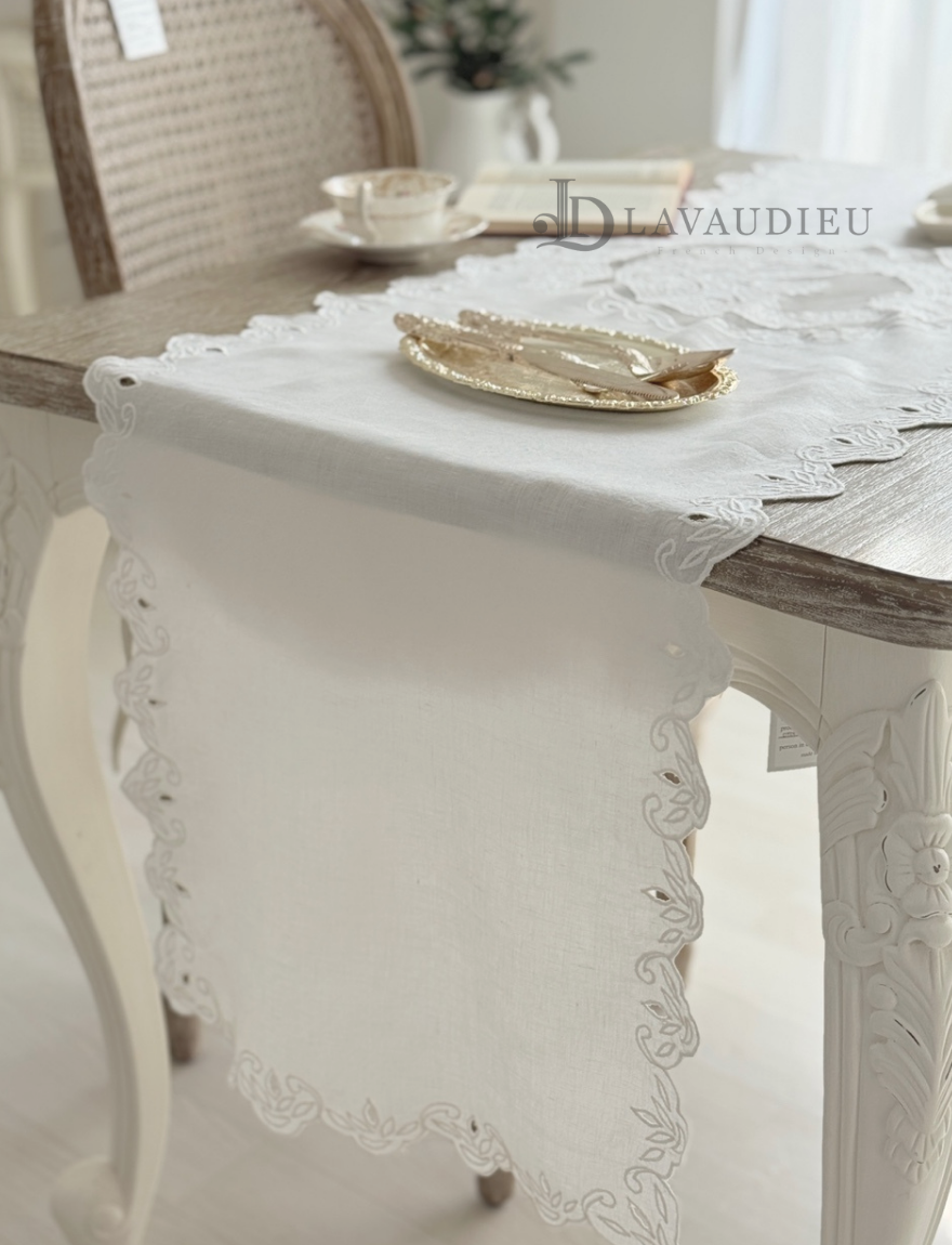 테이블러너 포인트데코 린넨자수 상트패턴 러너 화이트
