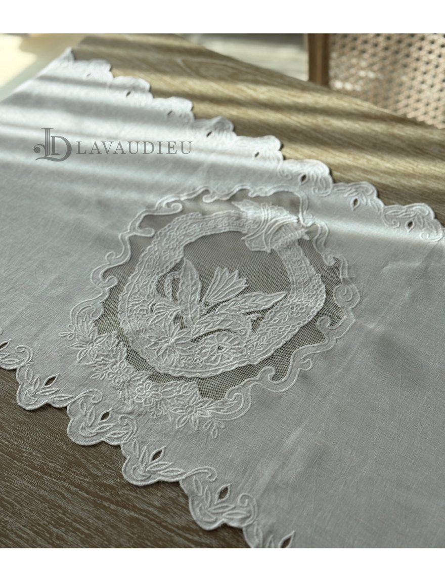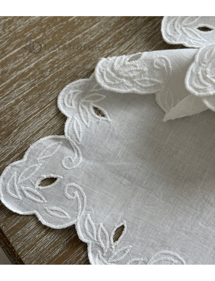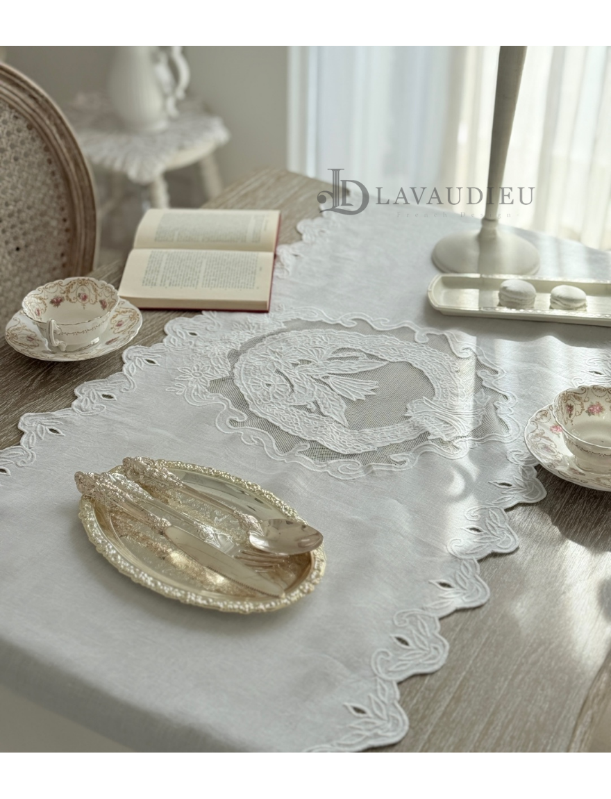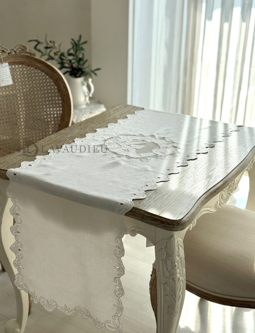 테이블러너 포인트데코 린넨자수 상트패턴 러너 화이트