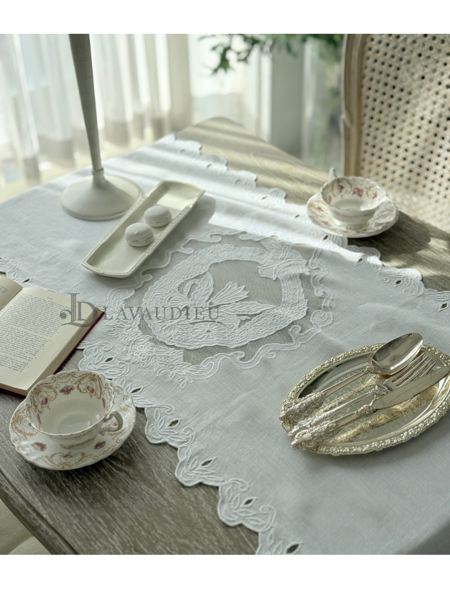 테이블러너 포인트데코 린넨자수