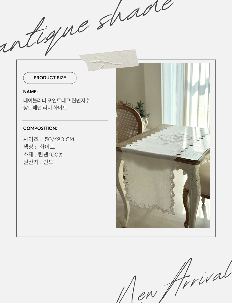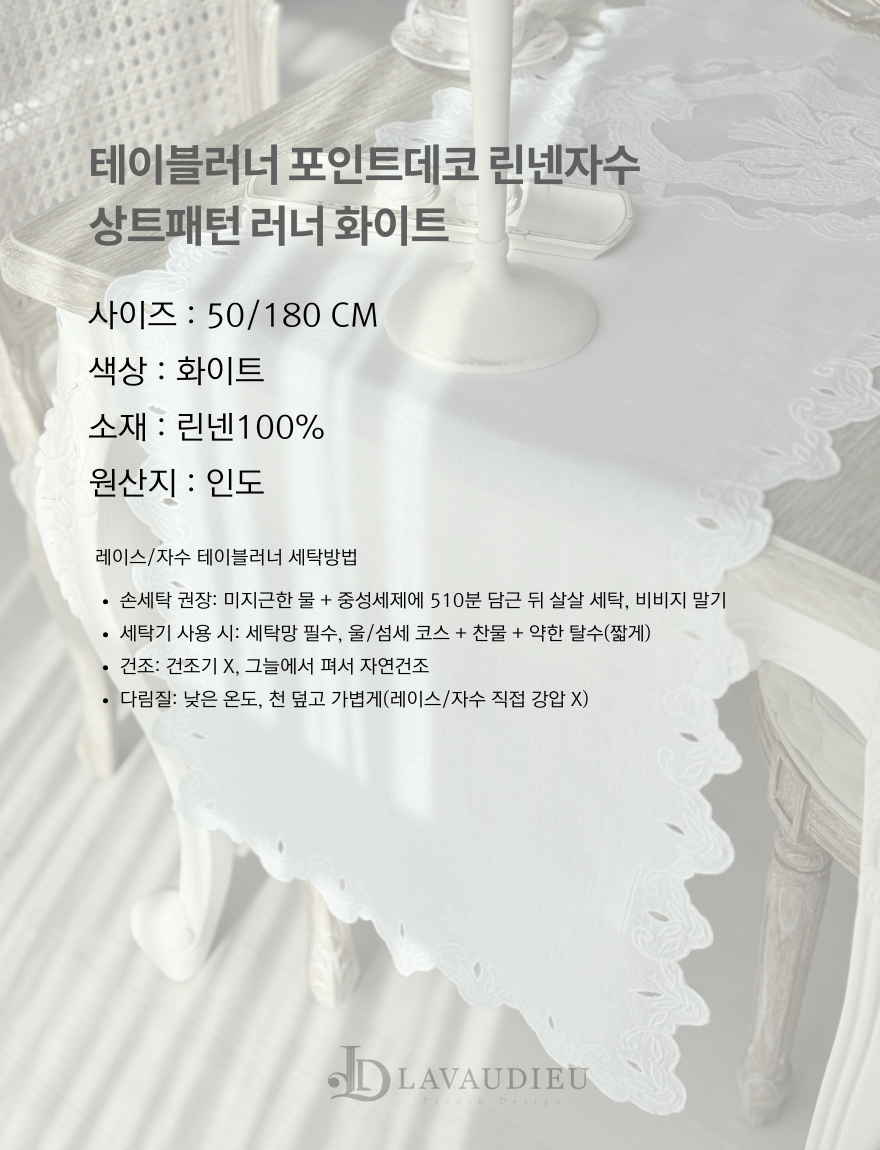 제품소재 테이블러너 포인트데코 린넨자수상트패턴 러너 화이트