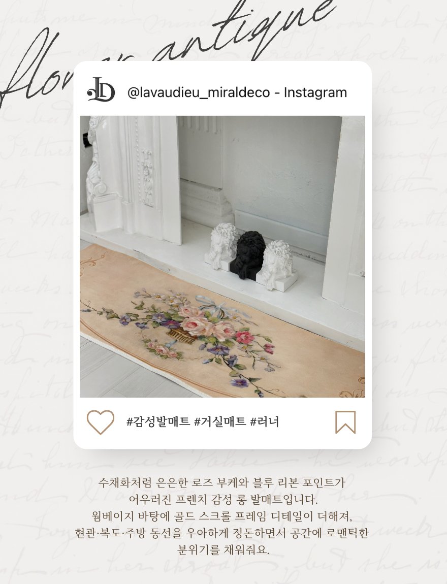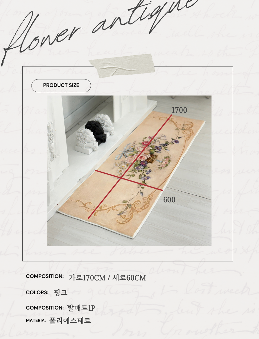 | 품명 | 프렌치빈티지 플로럴 바스켓 러너매트 로즈핑크 롱 발매트 홈인테리어 |