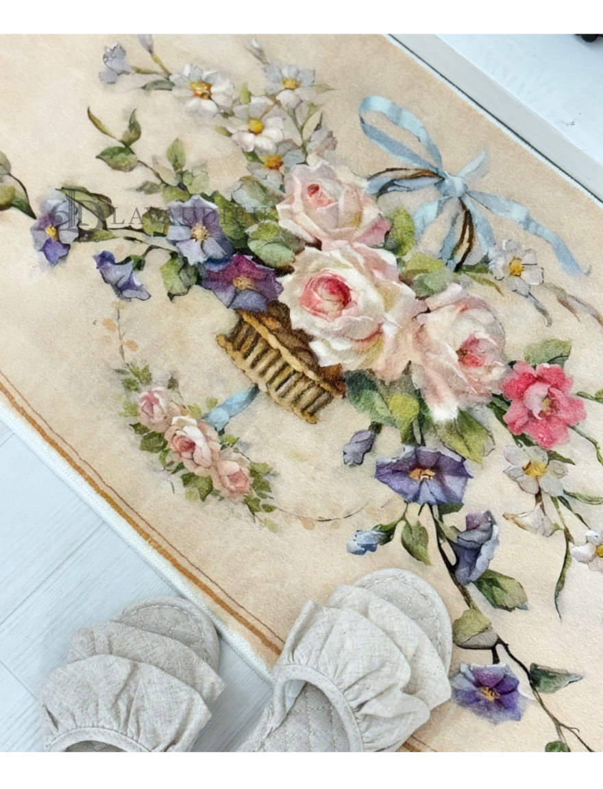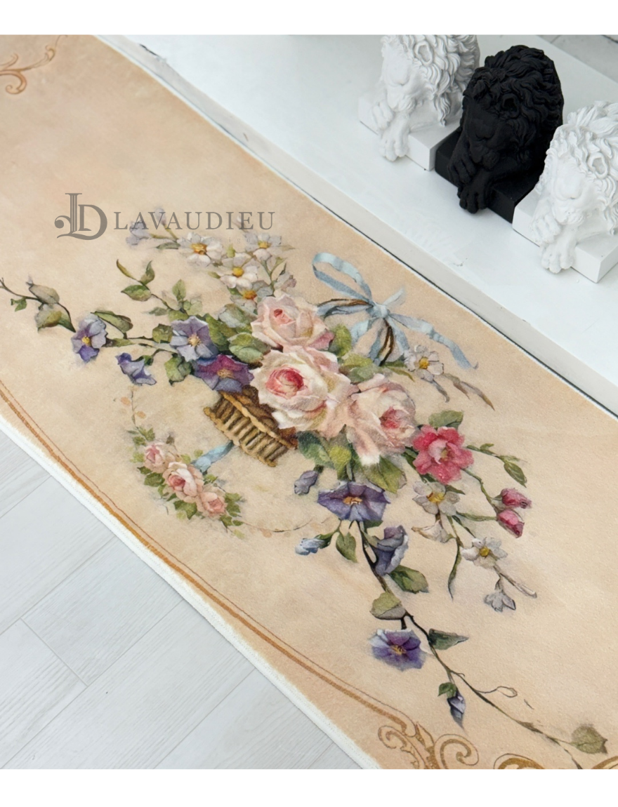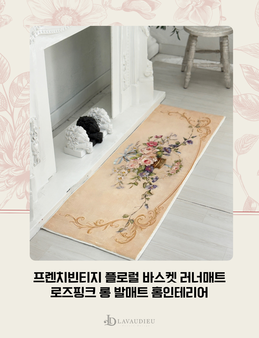 - HOME > 홈패브릭 커텐 발매트 > 발매트 > 프렌치빈티지 플로럴 바스켓 러너매트 로즈핑크 롱 발매트 홈인테리어