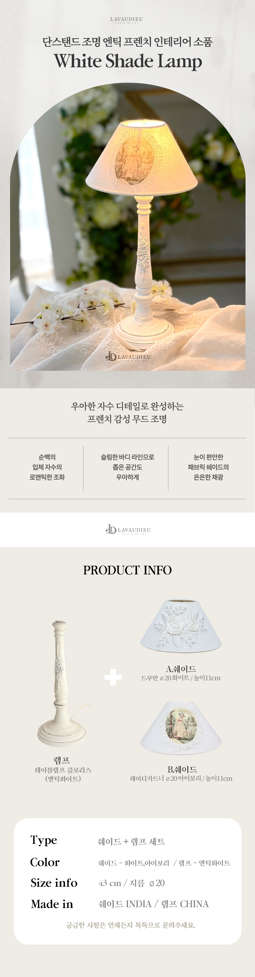 프렌치 특유의 섬세한 디테일이 살아있어 불을 켜지 않아도 훌륭한 인테리어 소품이 됩니다.