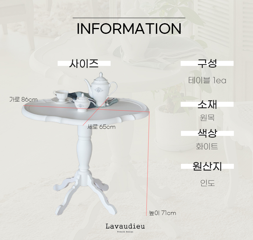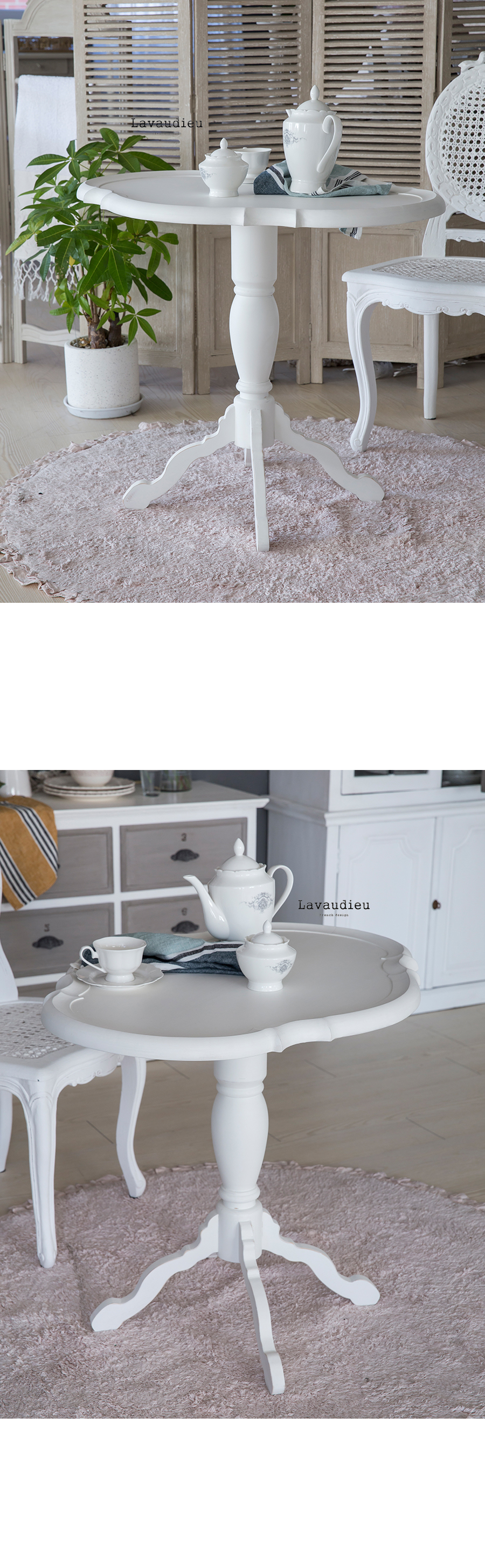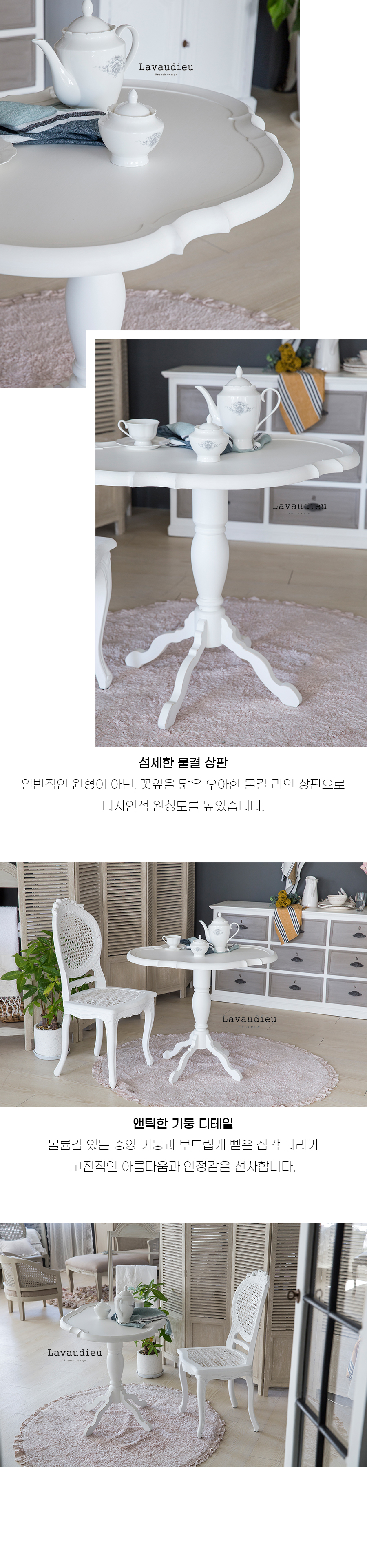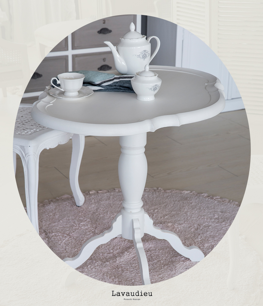 부드러운 물결 모양의 상판 라인이 돋보이는 프렌치 쉐비 스타일의 티테이블입니다.