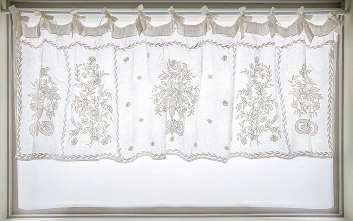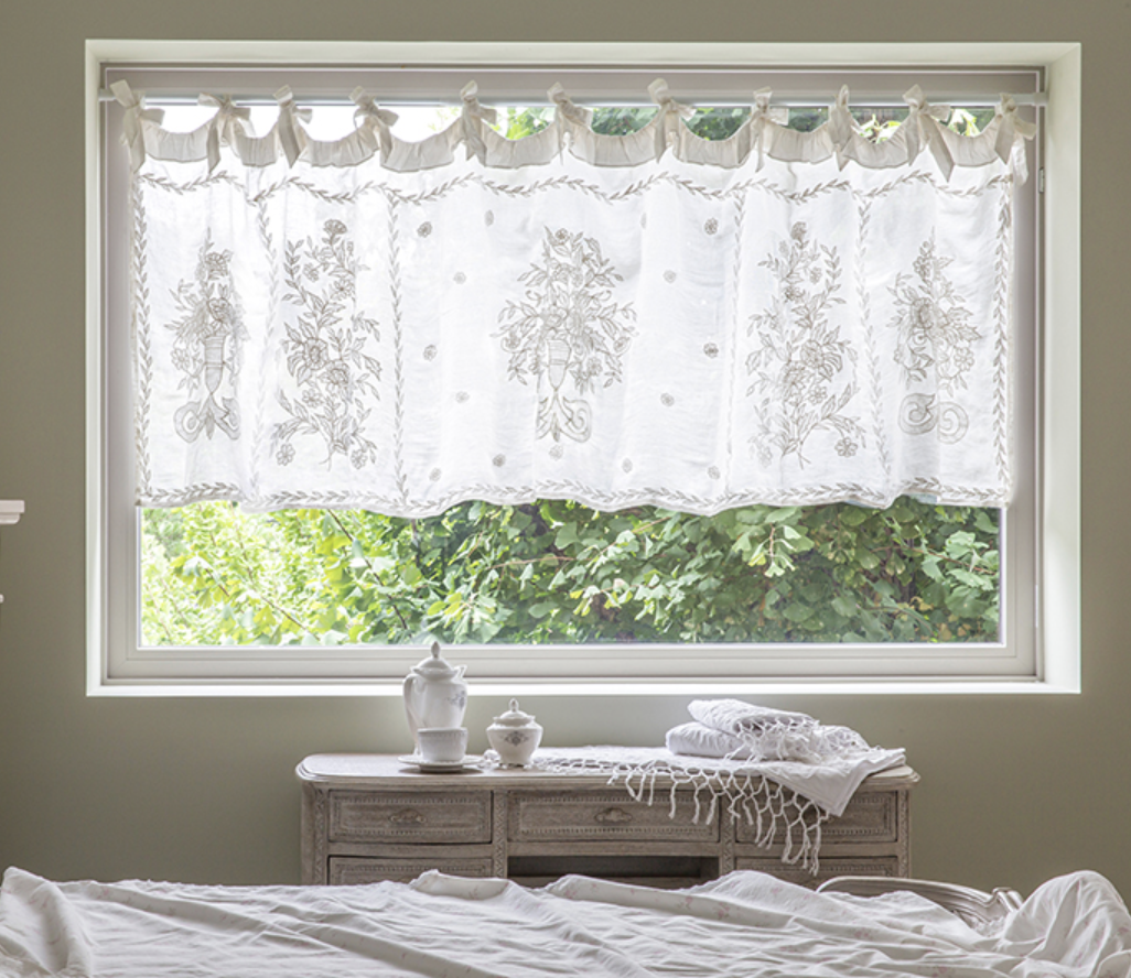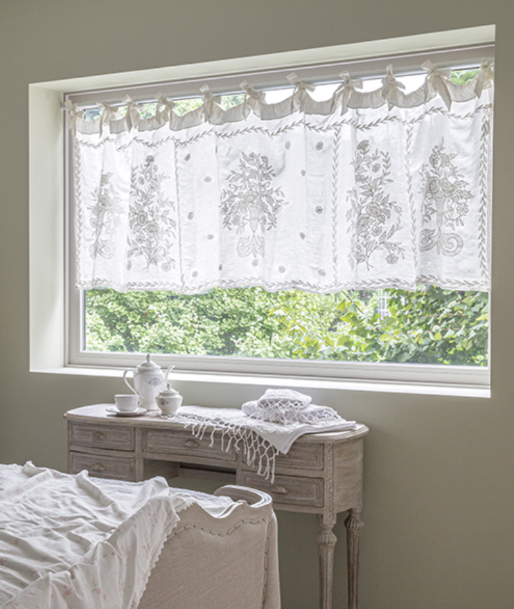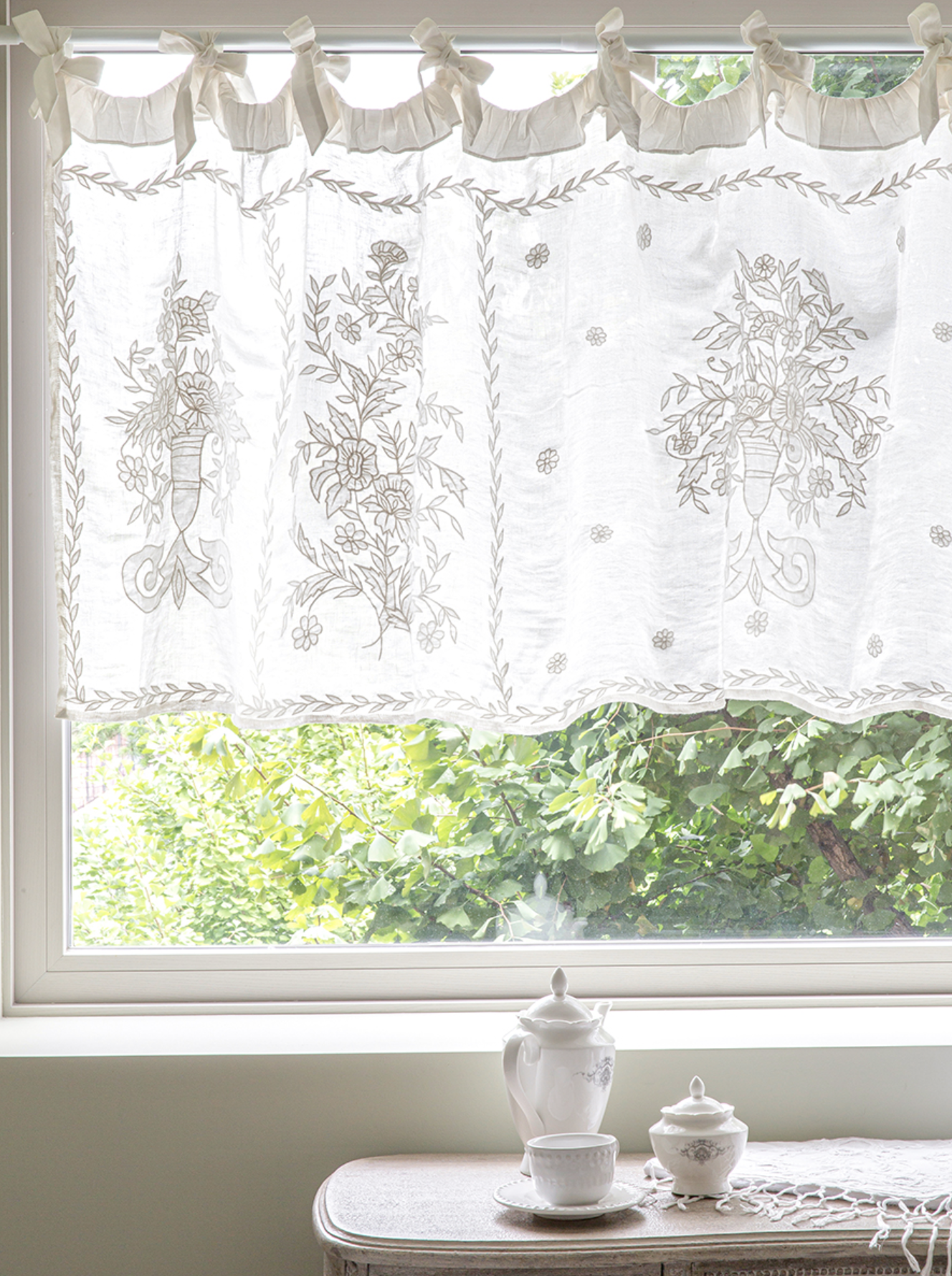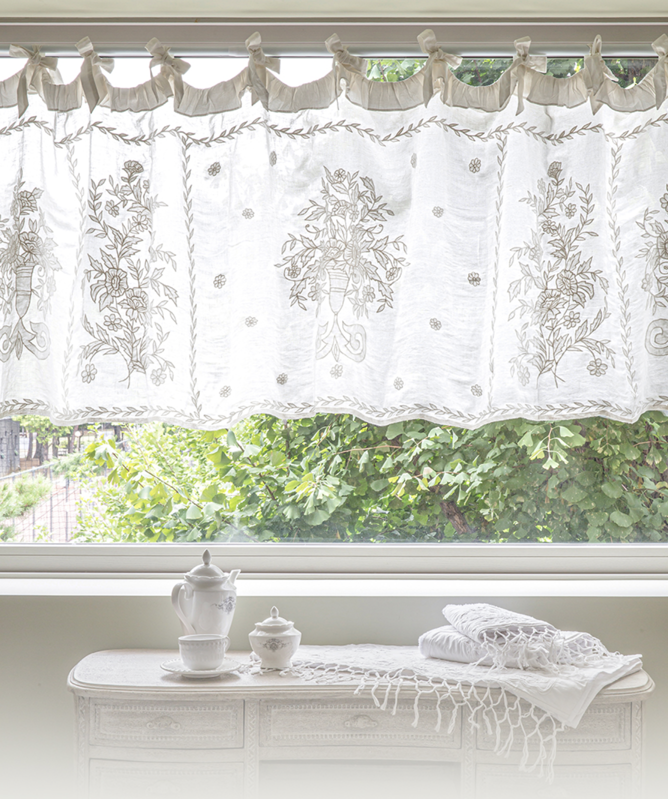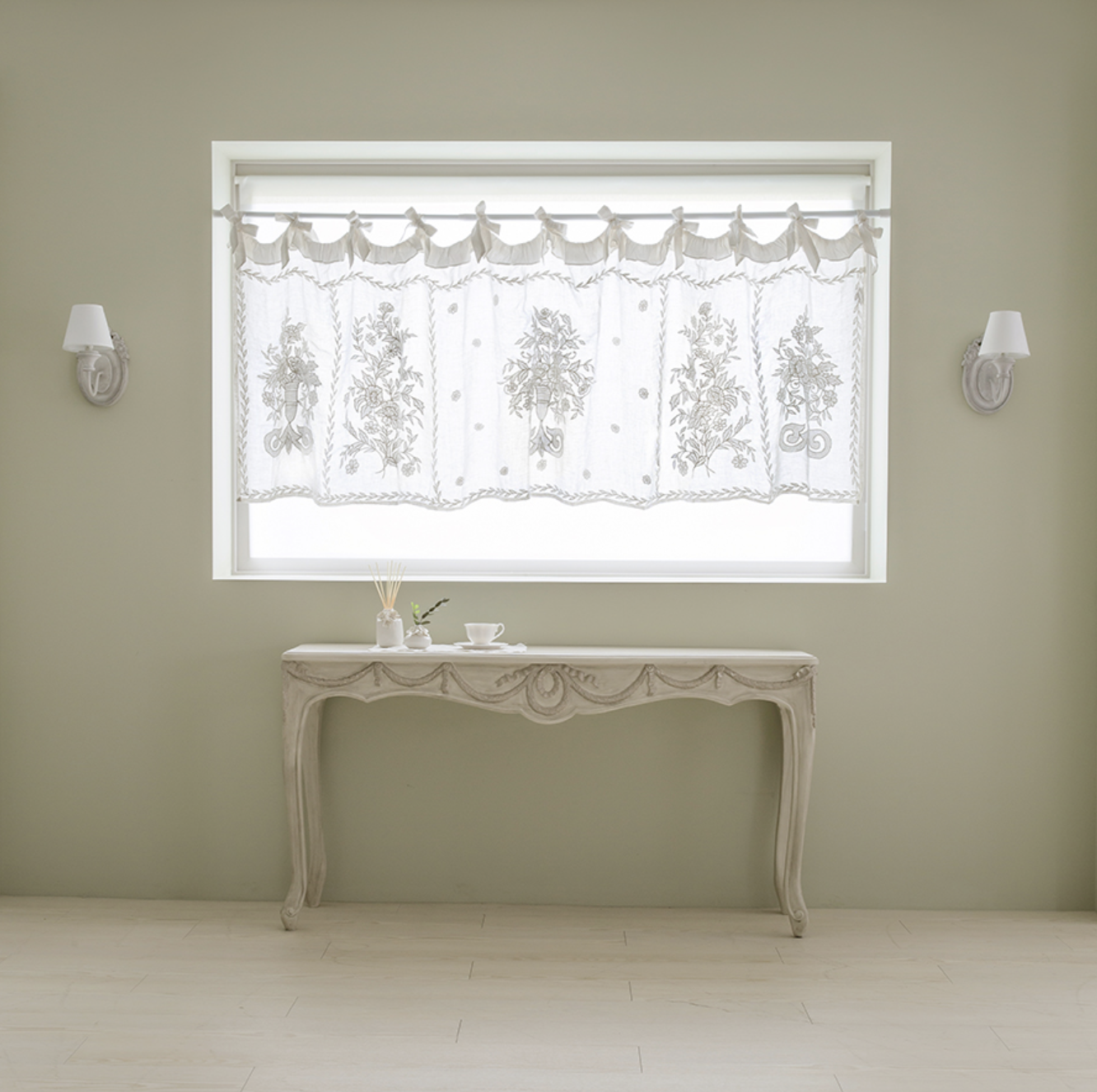 - HOME > 홈패브릭 커텐 발매트 > 커텐,바란스 > 프렌치 아이보리 플라워 펀칭 자수 롱 바란스 주방창 카페 인테리어 리본 가리개 커튼