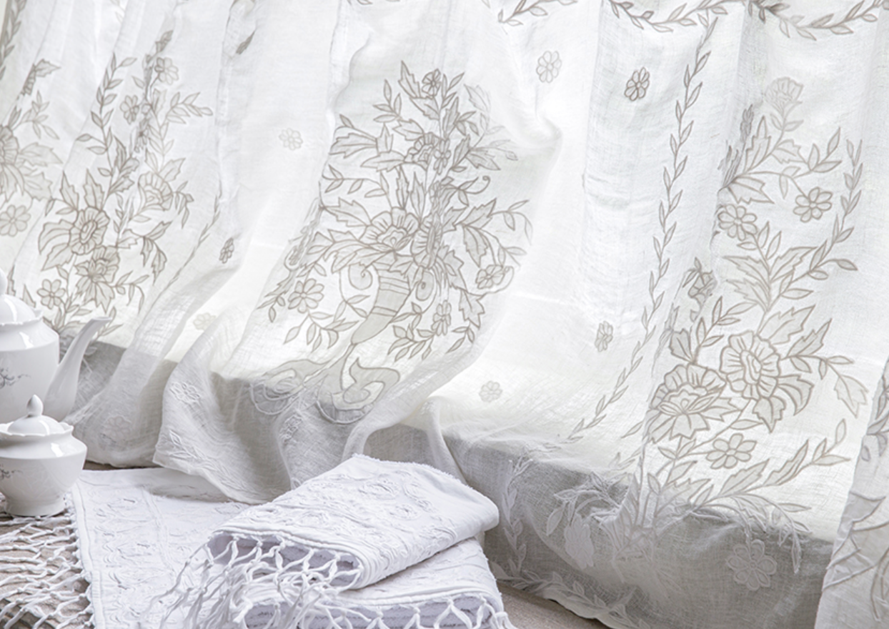 섬세한 망사 레이스 위로 피어난 입체 자수