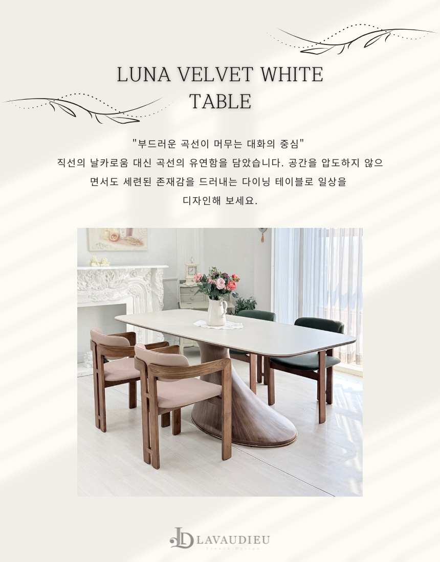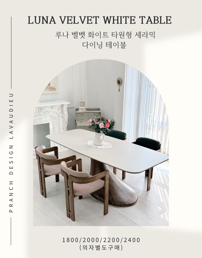 | 품명 | 루나 벨벳 화이트 타원형 세라믹 다이닝 테이블/의자 |