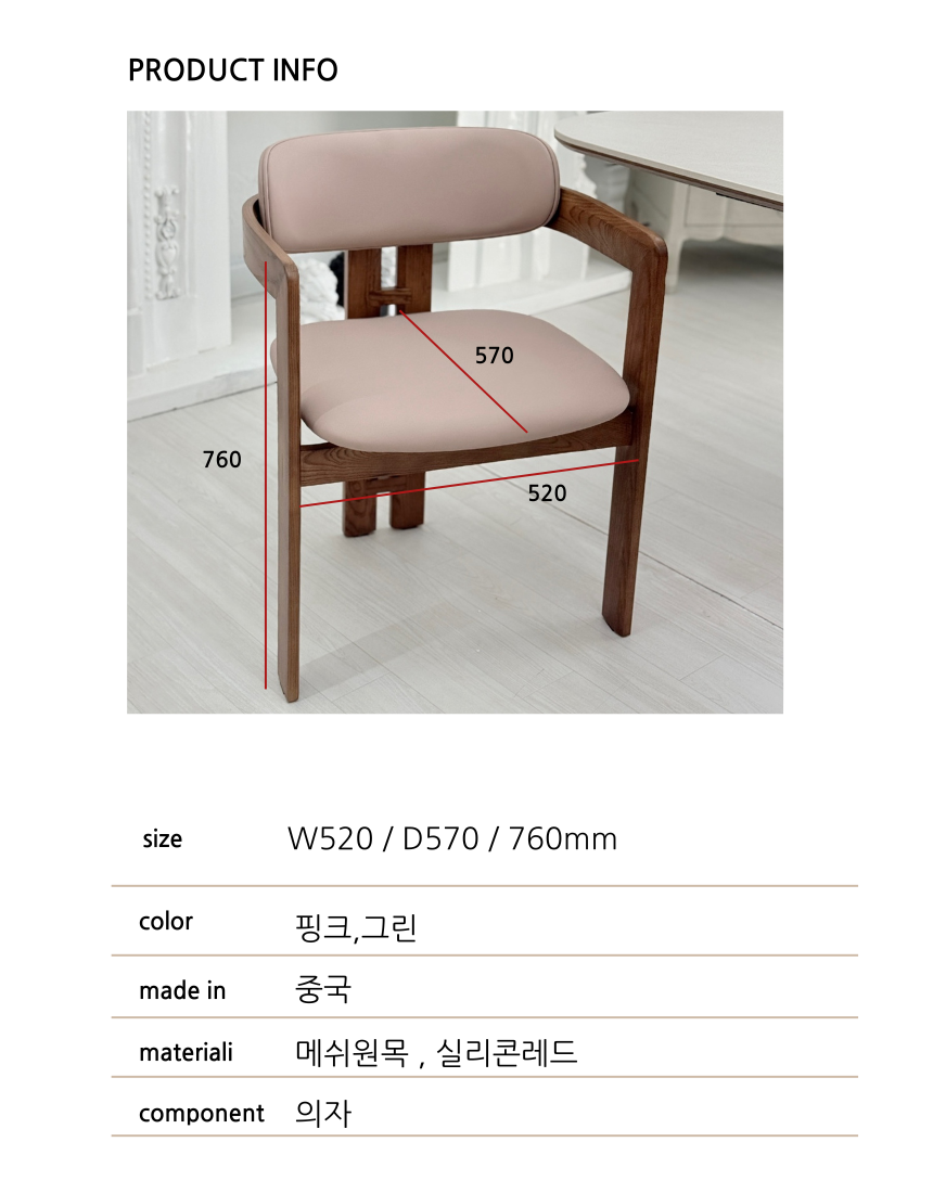 | 색상 | 식탁 - 화이트 / 의자 - 핑크,그린 |