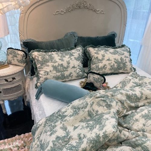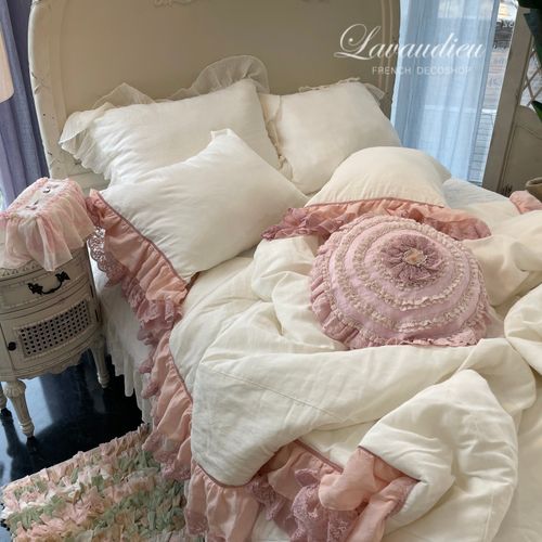 - 프렌치 플로럴 린넨 프릴 사계절 침구세트 침실 로맨틱 인테리어