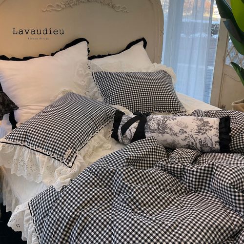- 프렌치 킹엄체크 프릴 레이스 사계절 이불 침구 블랙체크 신혼 침구