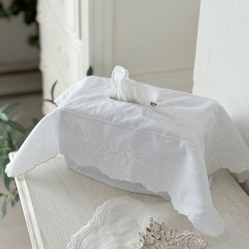 - 화이트 린넨자수 티슈커버 수입 엔틱 거실 침실인테리어 소품
