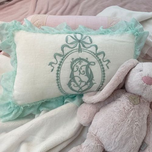 - 린넨 인테리어 프렌치 자수 홈데코 쇼파쿠션(이니셜 린넨쿠션/S)