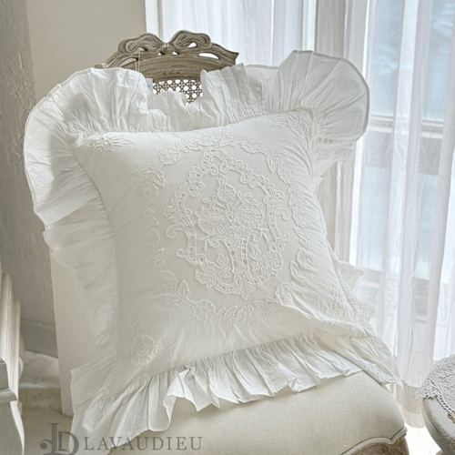 - 프렌치 로렌 클래식 엘레강스 자수 프릴 화이트 쿠션 홈데코