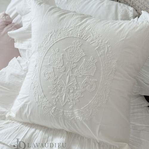 - 로렌 클래식 아라베스크 자수 프릴 화이트 쿠션 홈데코