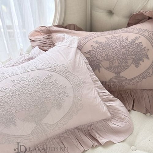 - 프렌치 인디핑크 자수 쿠션 수입 엔틱 거실 소파 등받이 프릴 포인트 침실 소품