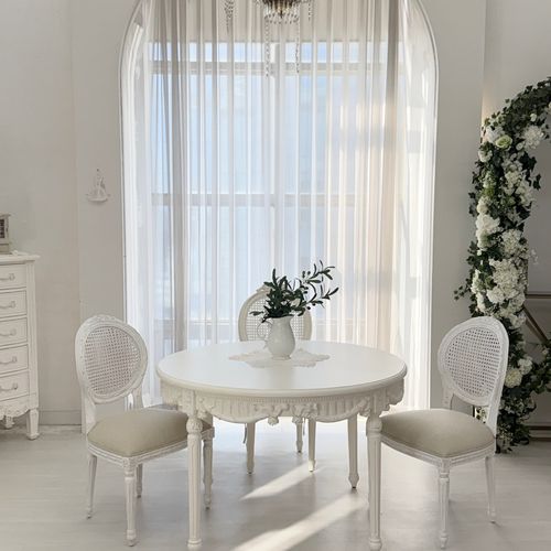 - 프렌치BLANC 104 블랑 원형 테이블 세트 테이블 쉐비 프렌치가구