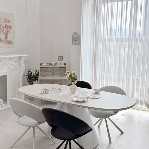 - 라운드 화이트 이브 포세린 세라믹식탁 180/200/220 테이블 사이즈선택 의자별도
