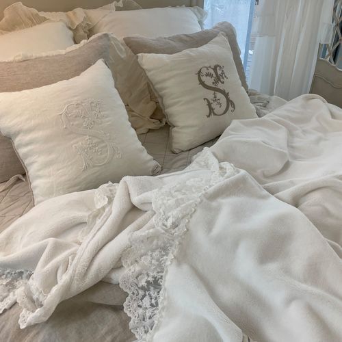 - 라보디유 린넨 롱프릴 화이트&화이트스프레드 패드 겸 프렌치침구 레이스 침구