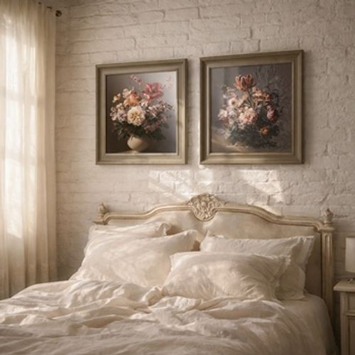 - 프렌치 플라워 정물화 가죽 프린팅 프레임 벽장식액자 엔틱 홈데코