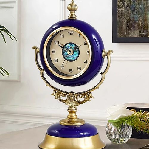 - 프렌치 사파이어블루 탁상시계 인테리어 소품 골드시계 엔틱시계