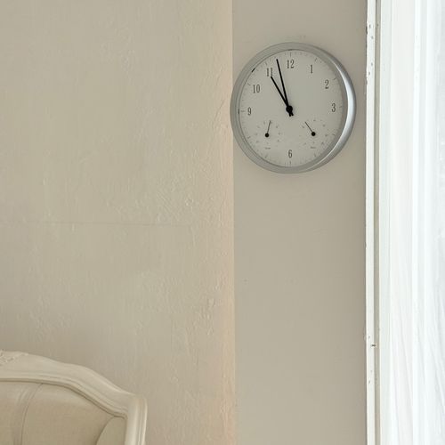 - 뉘앙스 템포 에끌레 벽시계 심플벽시계 온습도계 실버