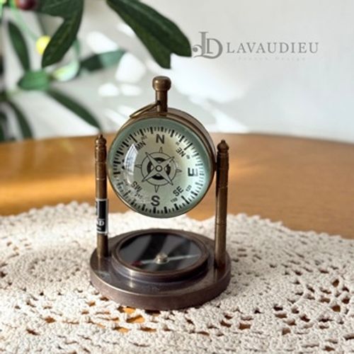 - 프렌치 엔틱 탁상용 나침반 시계 스탠드형 메탈 마린 컴퍼스 브론즈컬러