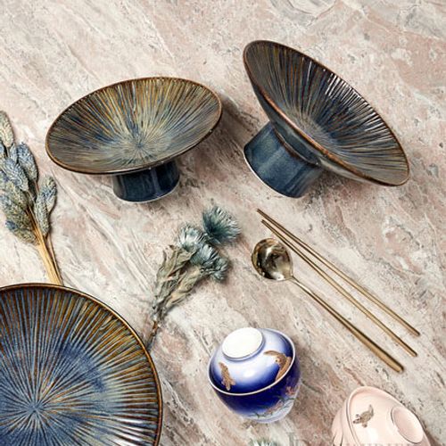 - 블랙 펄 푸른빗살 굽 접시 (小) (中) 플레이팅접시 고급식기