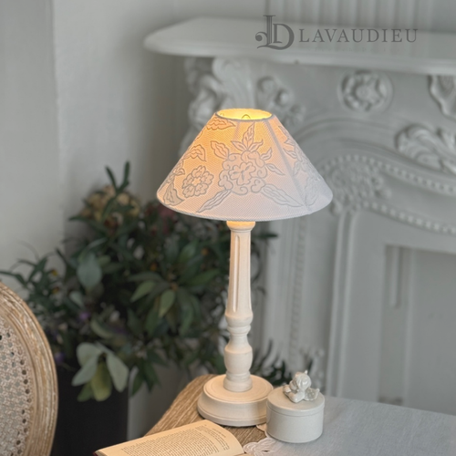 - 꼬끄시그루 프렌치 쉐비 침실 조명 쉐이드 플라워 린 콜롬보 테이블램프 파스텔 (엔틱화이트)