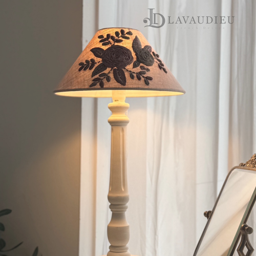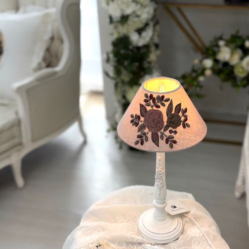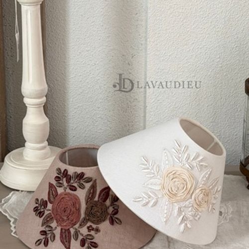 - 꼬꼬시그루 쉐이드 린넨 자수 프렌치 인테리어 소품 (C플라워 솔리드램프)