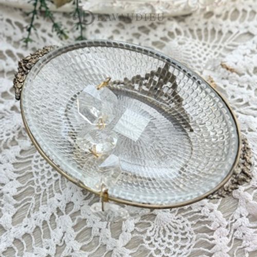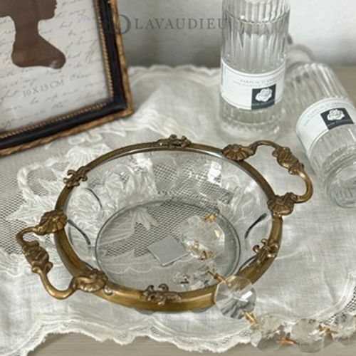 - 프렌치 엔틱 브론즈 핸들 글라스 볼 트레이 빈티지 장식 소품